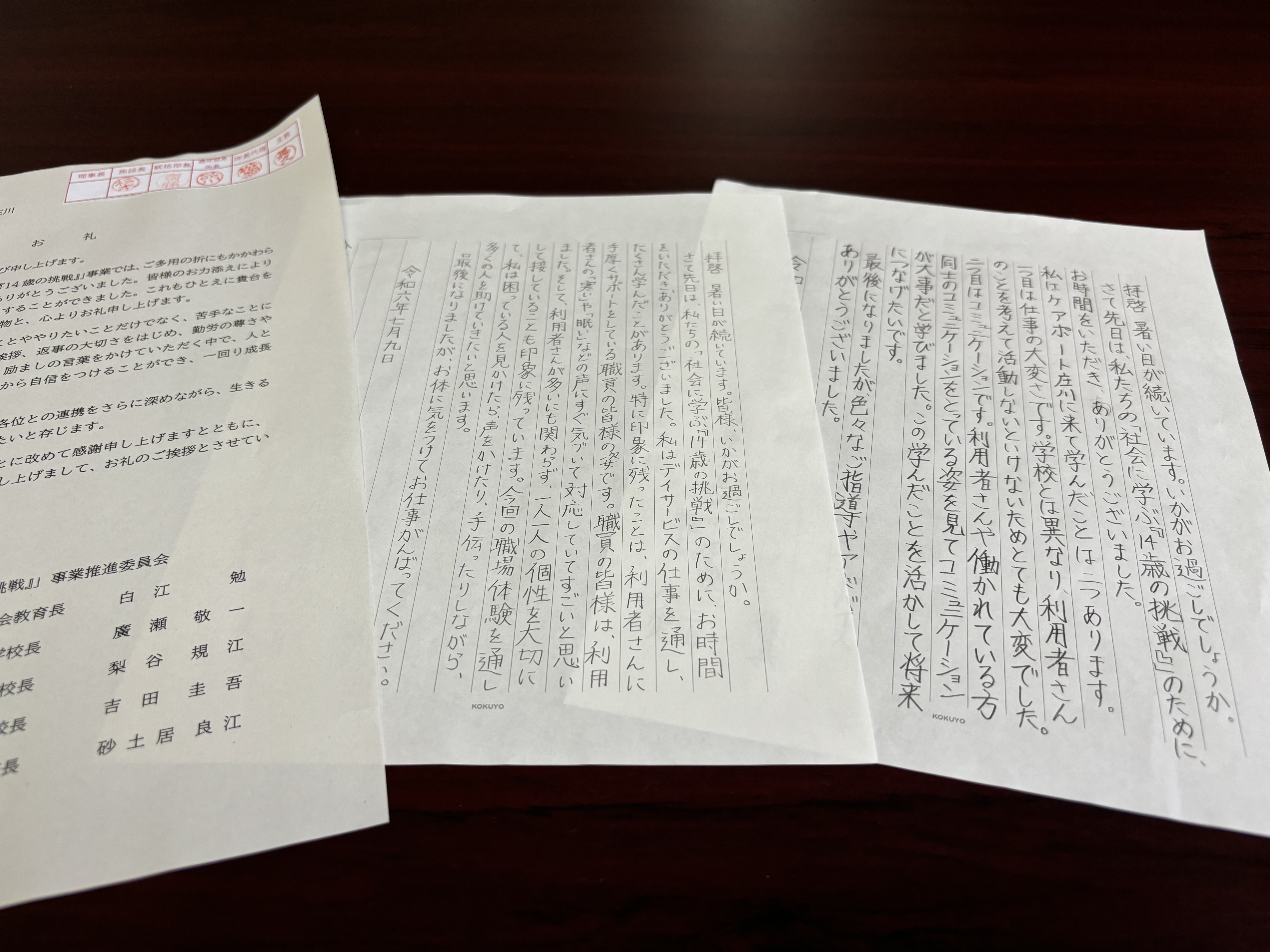 私たちの施設でも同校の生徒さんの実習を受け入れていますが素直で向上心があり大きく成長してくれると願っています。