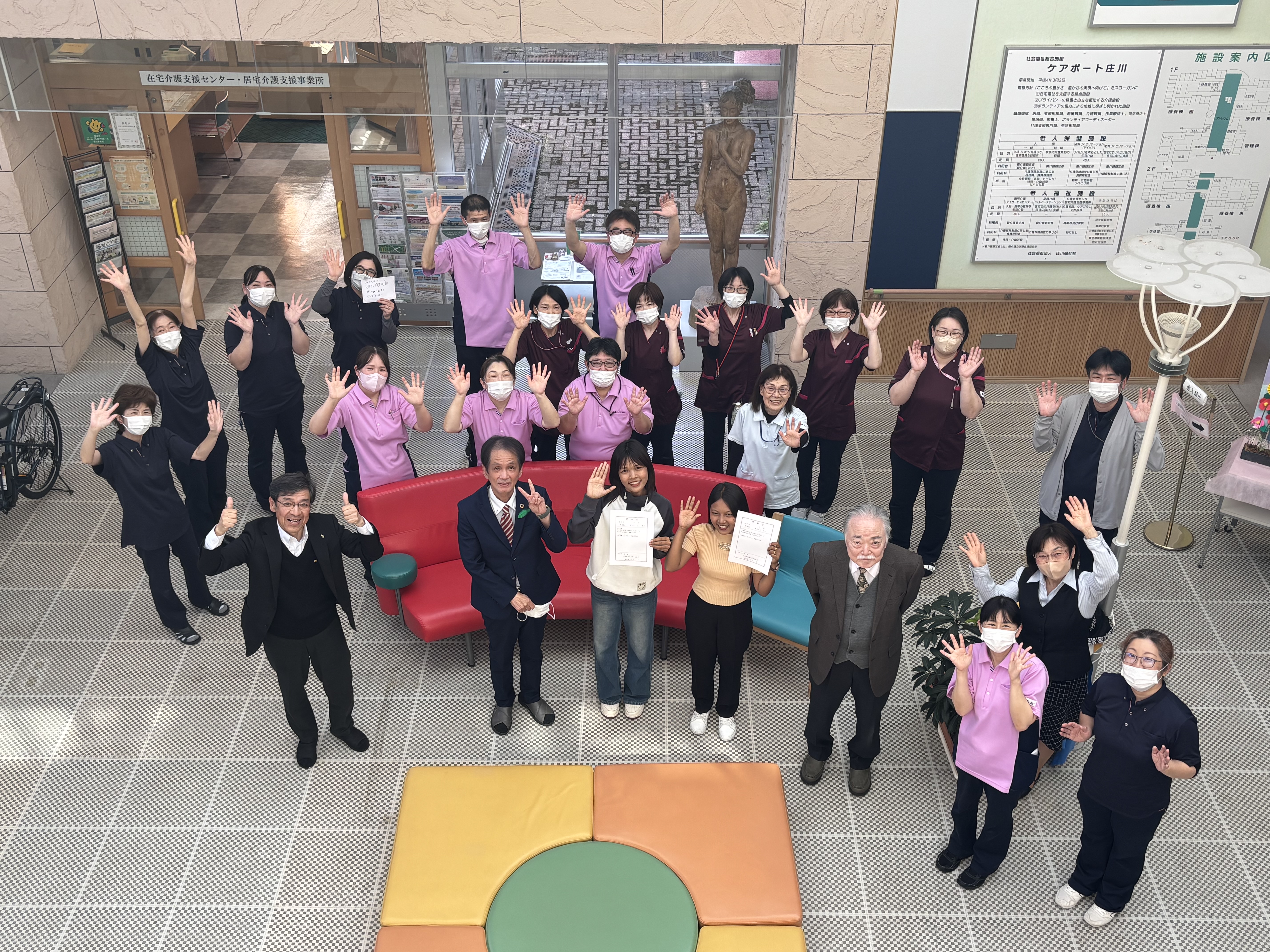 今、南砺福野高校から介護実習生のみなさんを受け入れています。彼女たちの素直な心と柔軟な発想を目の当たりにして思うことは、将来、現場で学んだ介護という仕事が必ずや人を幸せにするすばらしい職業であることに誇りをもち、100年先につながる介護の新しいスタンダード(基準、価値)への道筋を築いていく希望のヒカリに見えました。