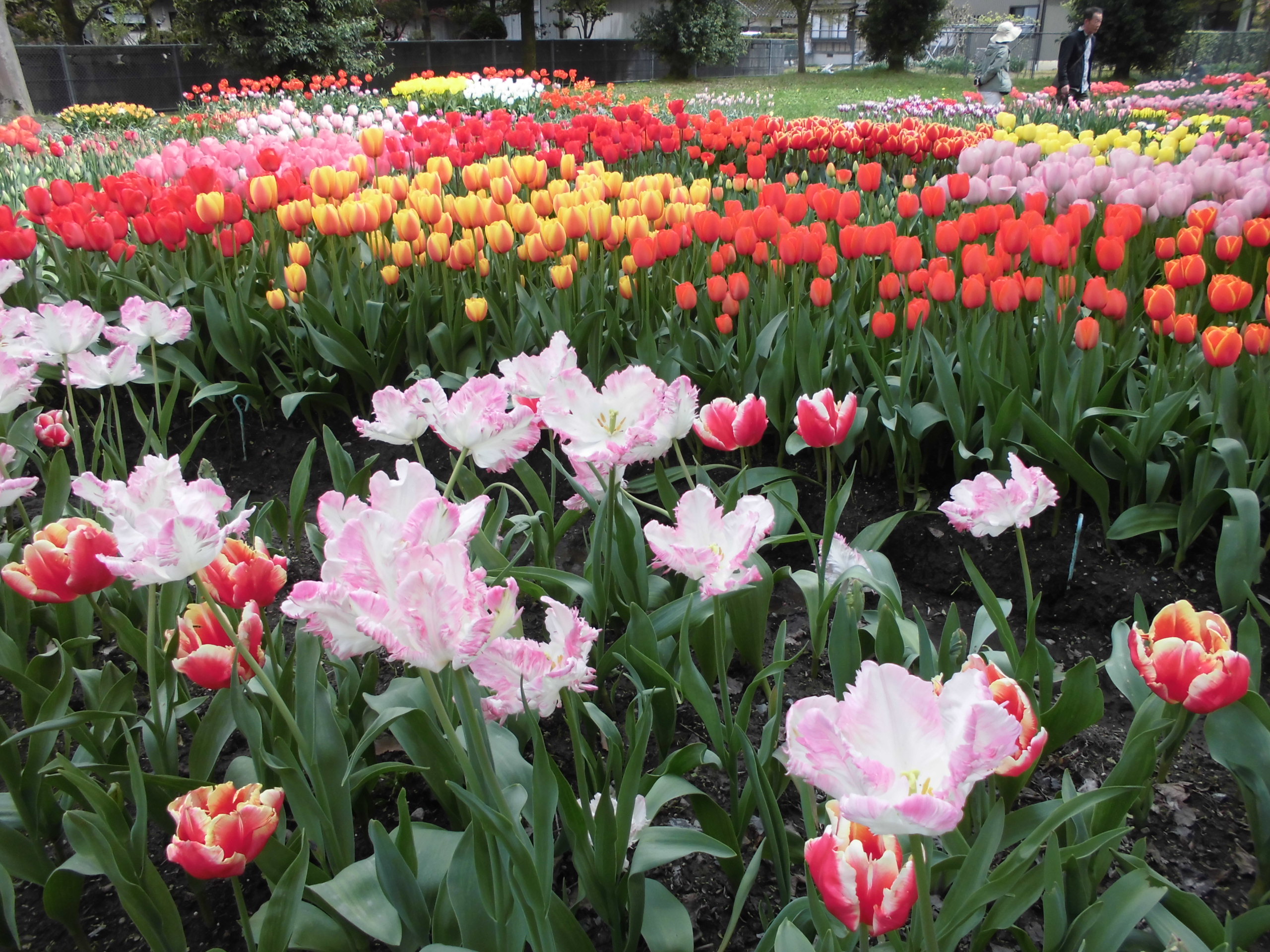 桜の次は、チューリップ見学に行って来ました。チューリップ四季彩館の花壇には、めずらしい品種も多くあり、「これもチューリップけ⁉」と驚きながら愛でておられました。また帰り道、田んぼ一面に色とりどりのチューリップが咲いており、春を満喫しました。