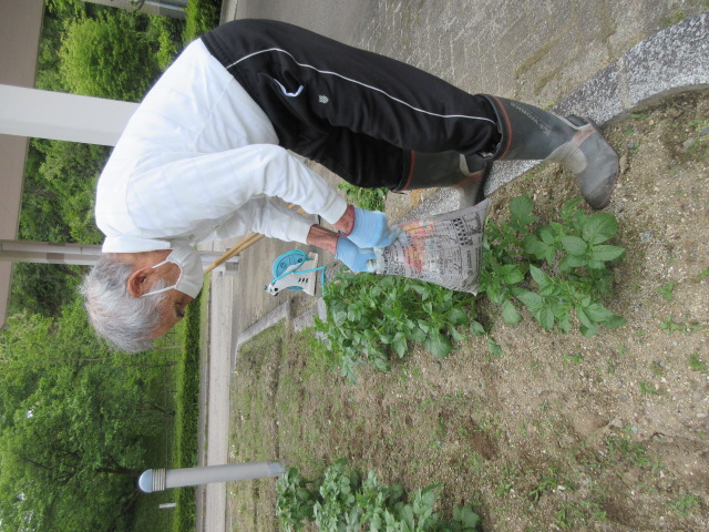 晴れた日が続いたあと、肥料をまき、土寄せを行いました(^^)