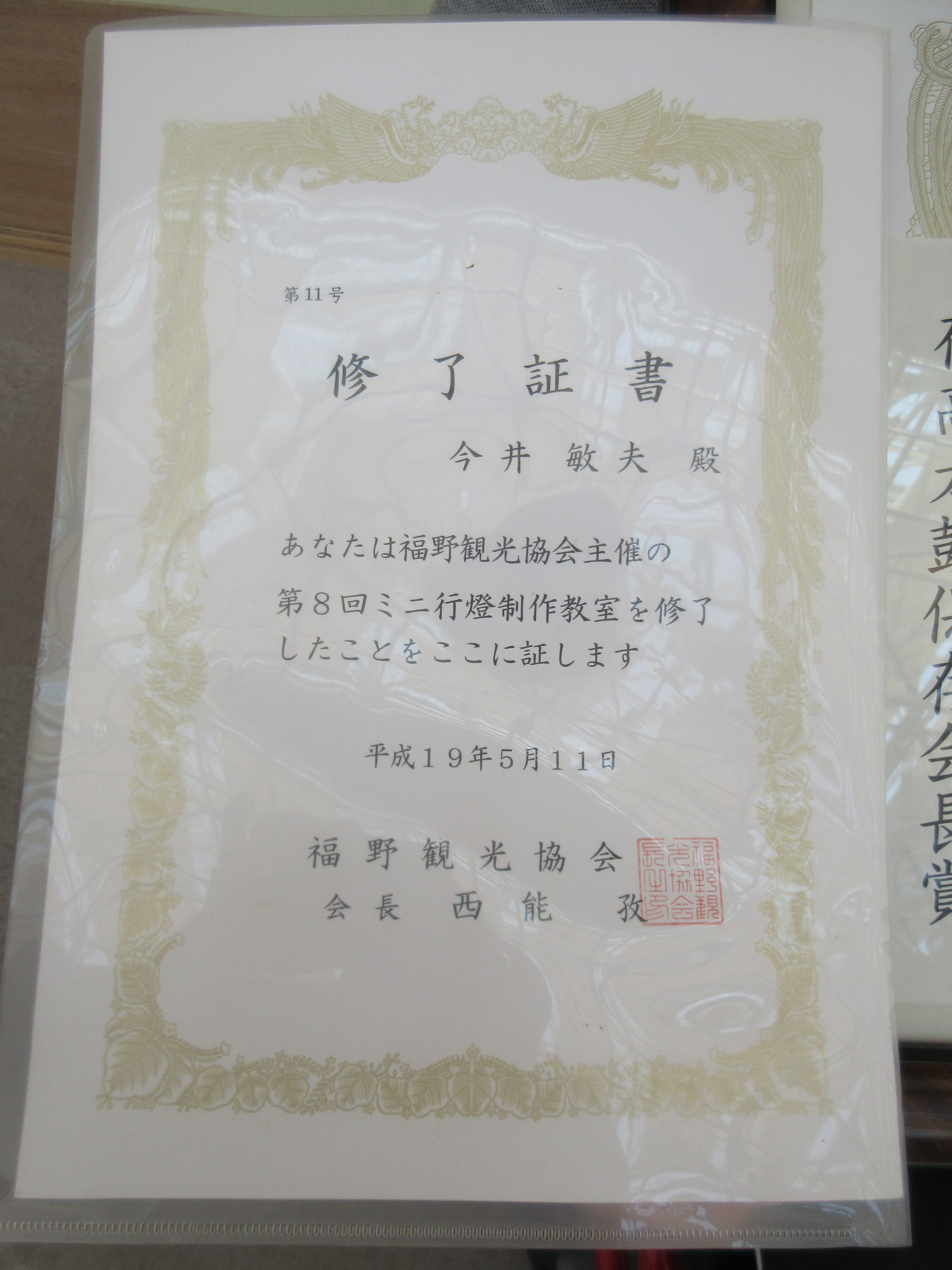 平成19年の庄川観光祭に合わせて作られたミニ行燈。