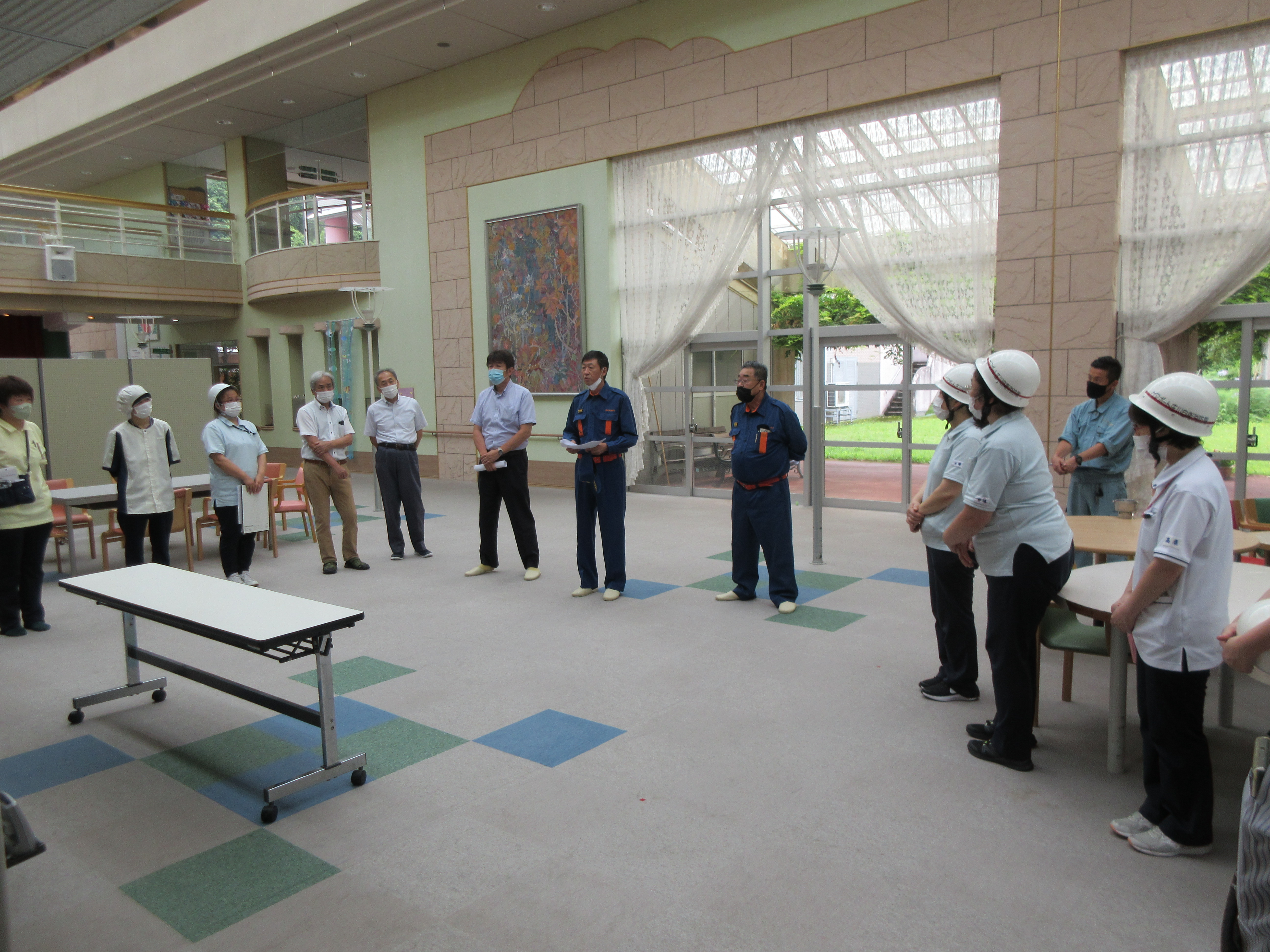 避難訓練があることは入所者さんも職員も知っていたのですが、14時にジリジリジリ~🔔となった瞬間、みんな緊張が走りました。
