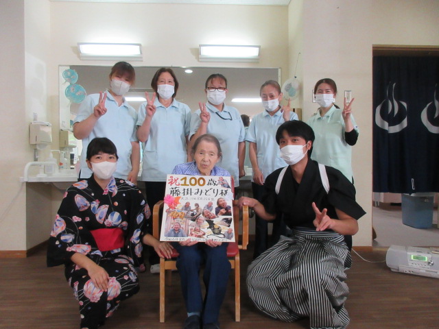8月25日に、100歳の誕生日を迎えられる藤掛みどり様の誕生会を行いました。