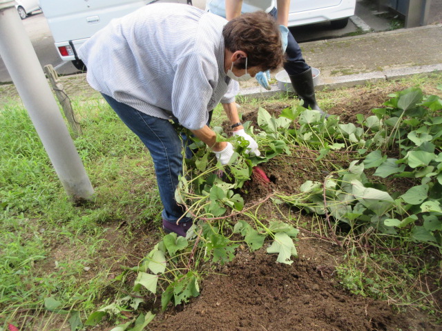 デイケアの畑で育てていたさつまいもを収穫しました!!