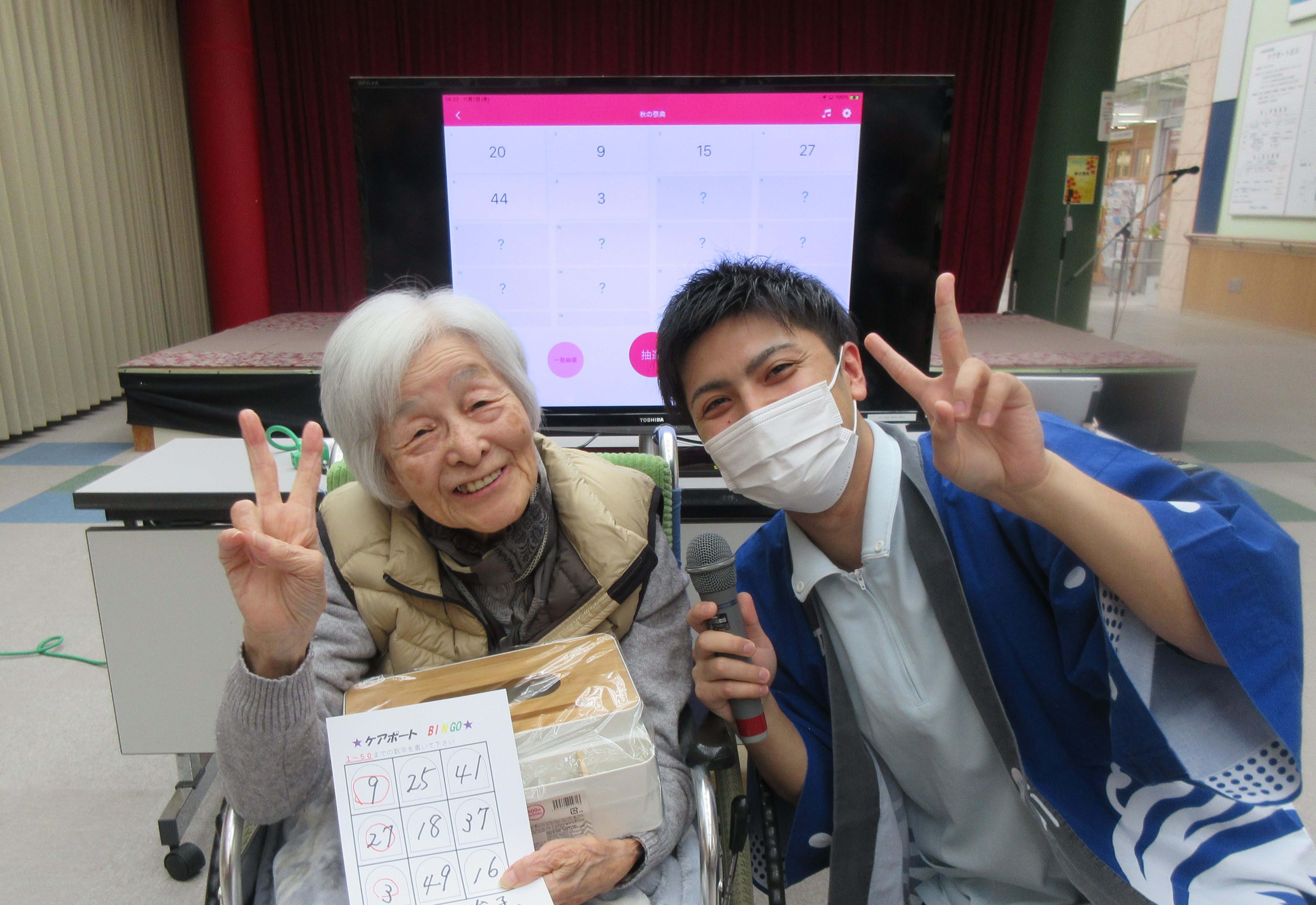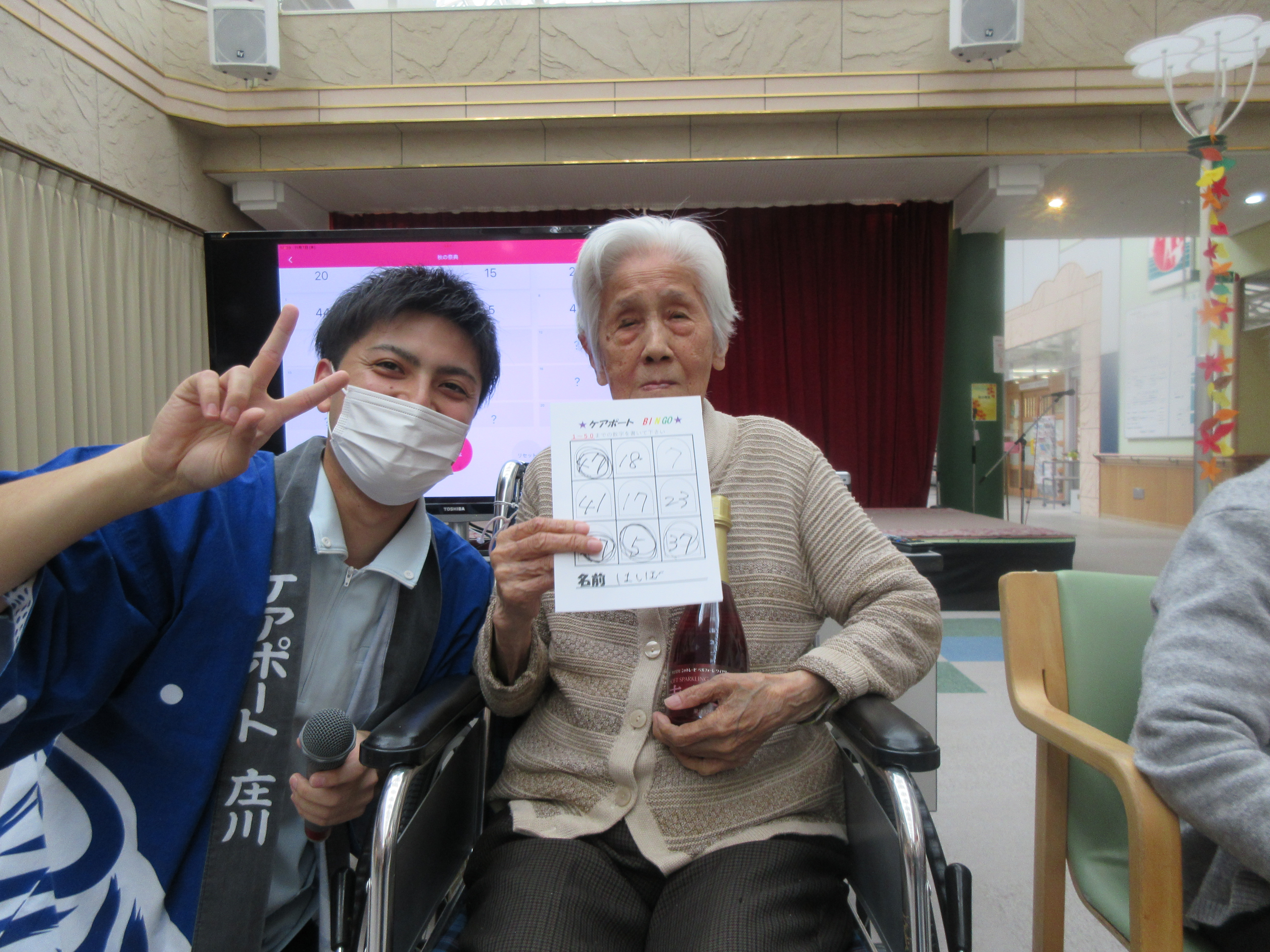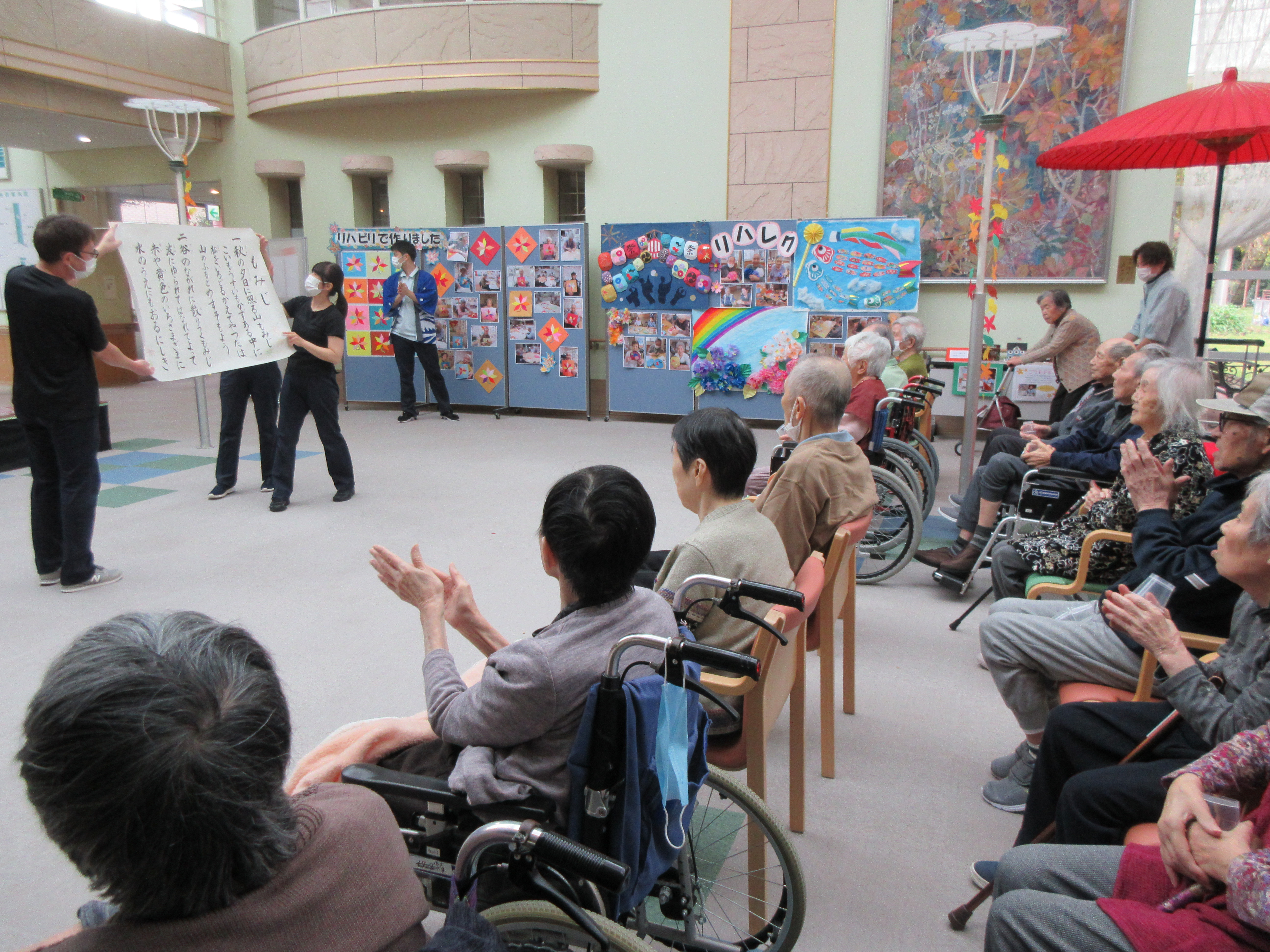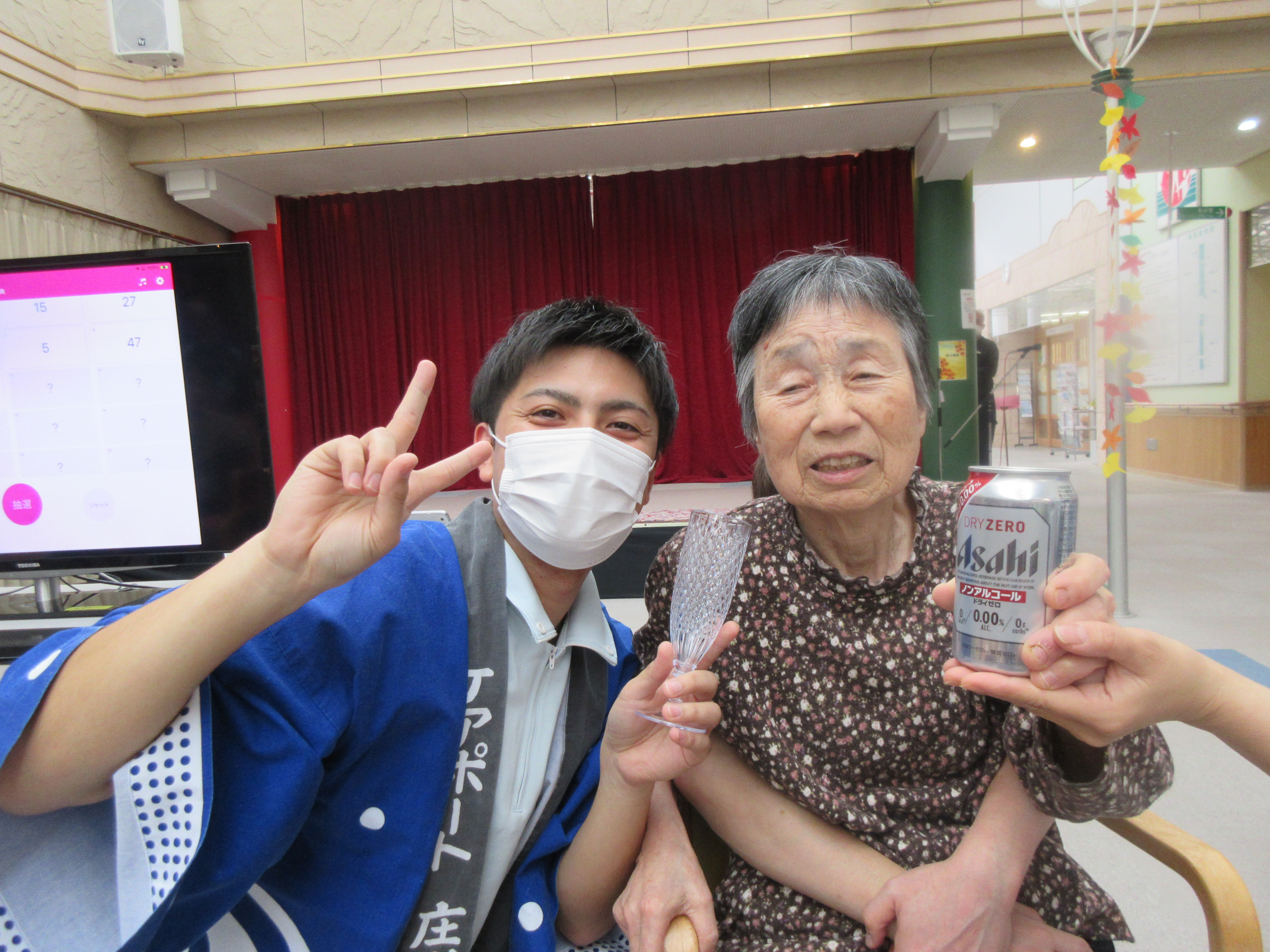 よさこい鳴子踊りです。どんどん人が増えていき、最後にはケアポート庄川の理事長も参加しました。