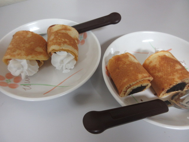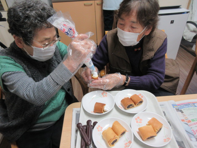 デイケアではおやつ作りで「あんこ巻き」を作りました(^^)