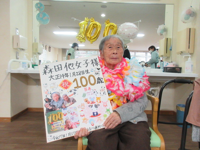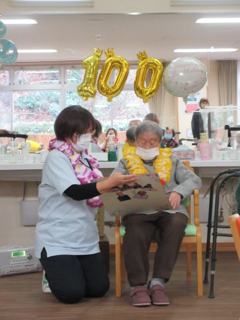 今月100歳を迎えられる利用者様のお祝いをしました~!