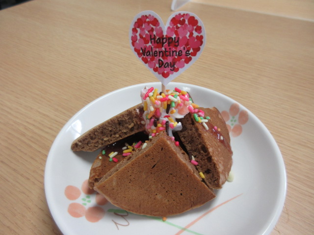 バレンタインにぴったりのパンケーキに仕上がりました☆