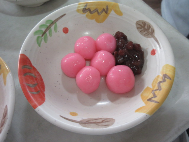 白玉粉に食紅と豆腐を混ぜて桜色にし、やわらかく仕上げました!