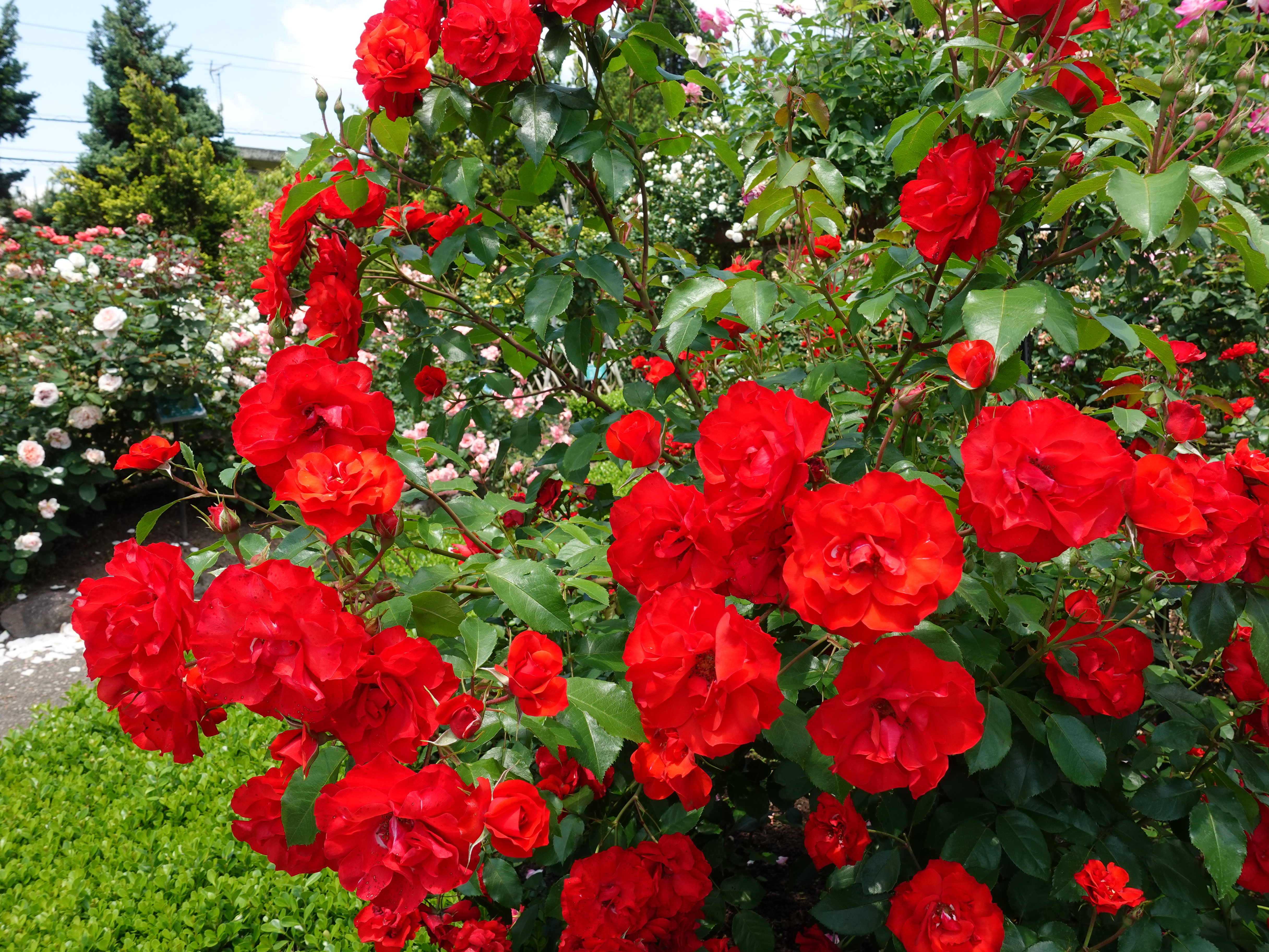 沢山の種類のバラが咲いていて、華やかな彩りと甘い香りが漂っていました。