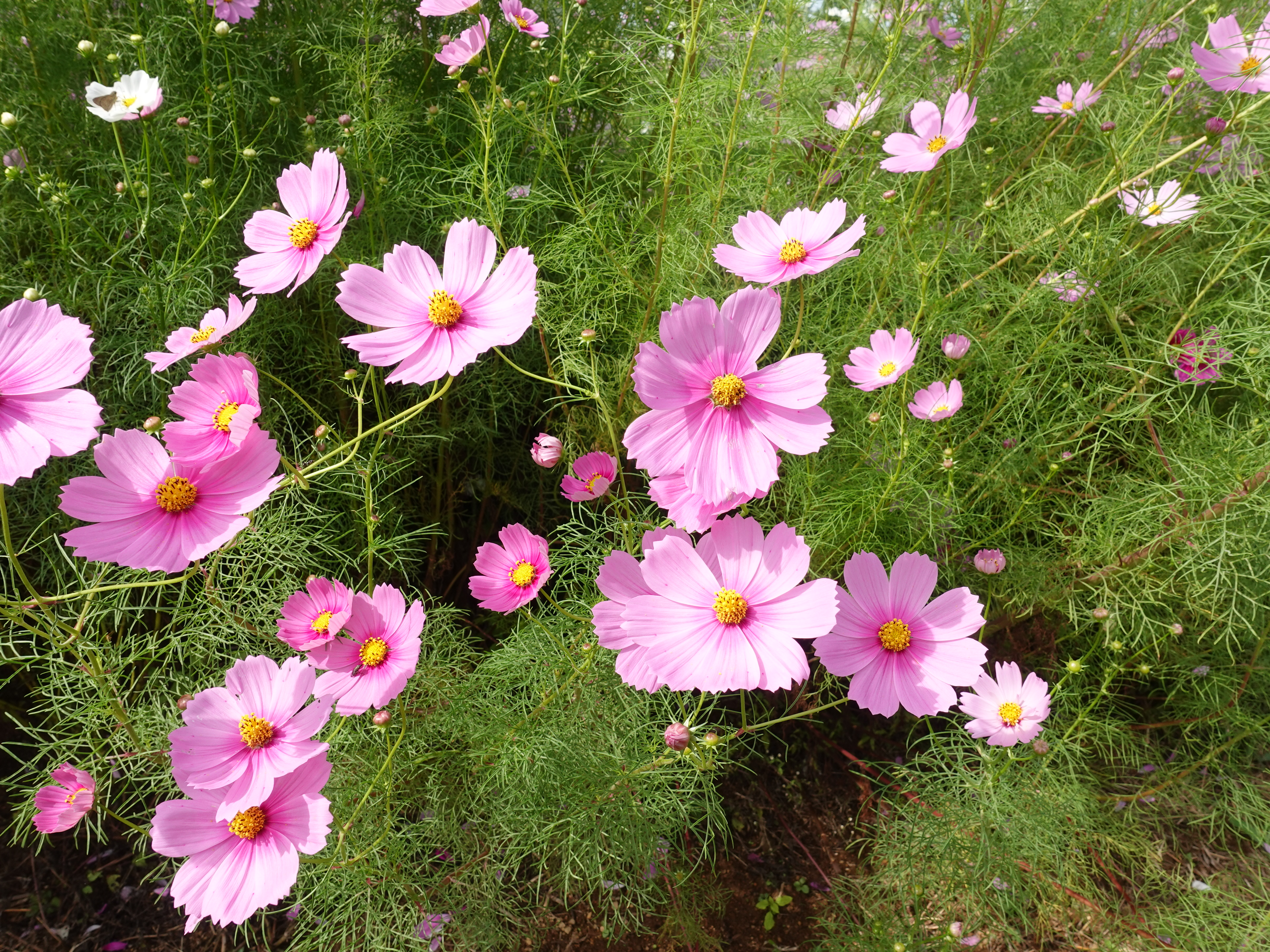 スキー場ゲレンデに咲き誇るコスモスが風に揺れて心も和みました。