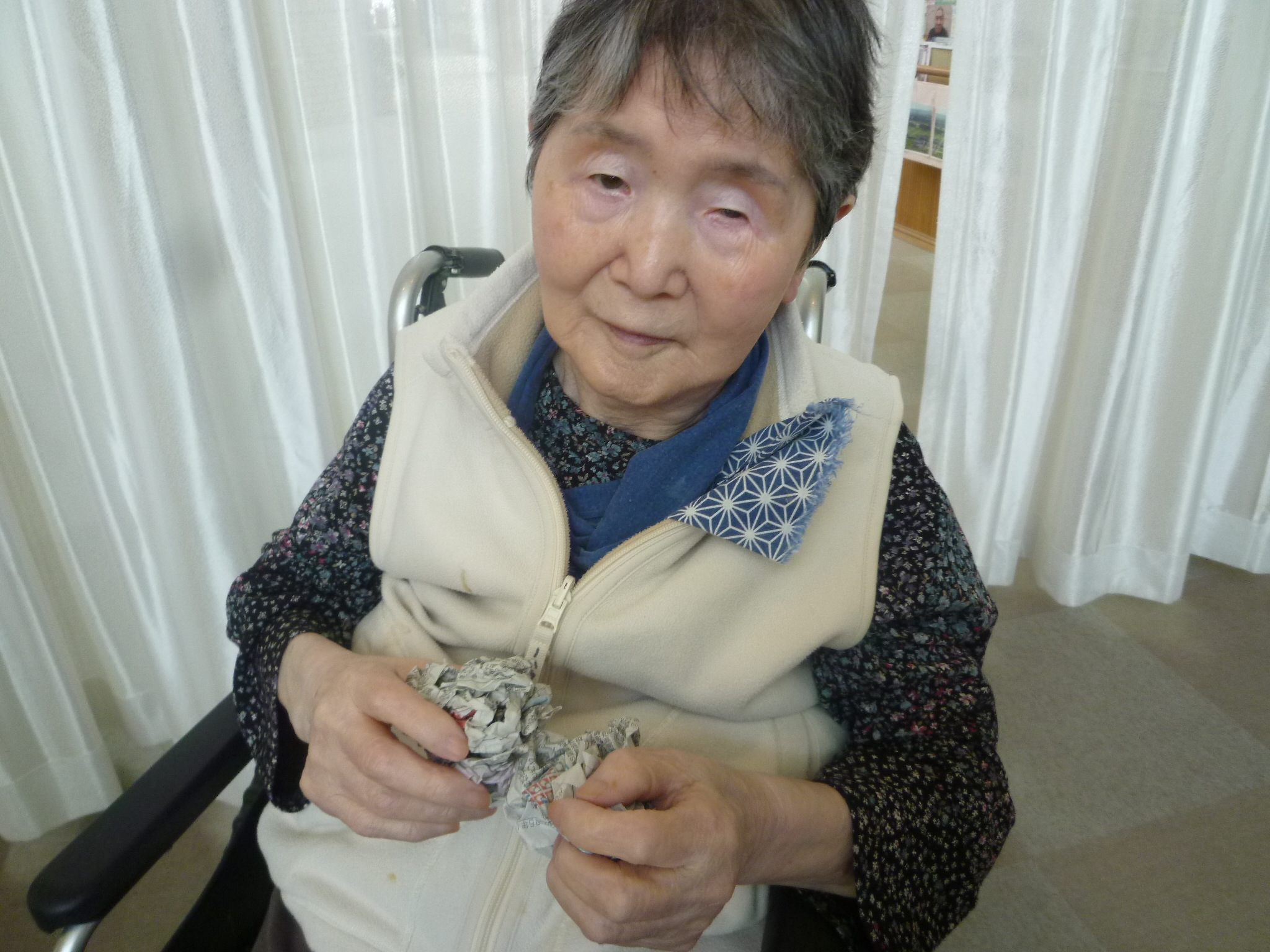 豆に見立てて、新聞で作った豆ボールを