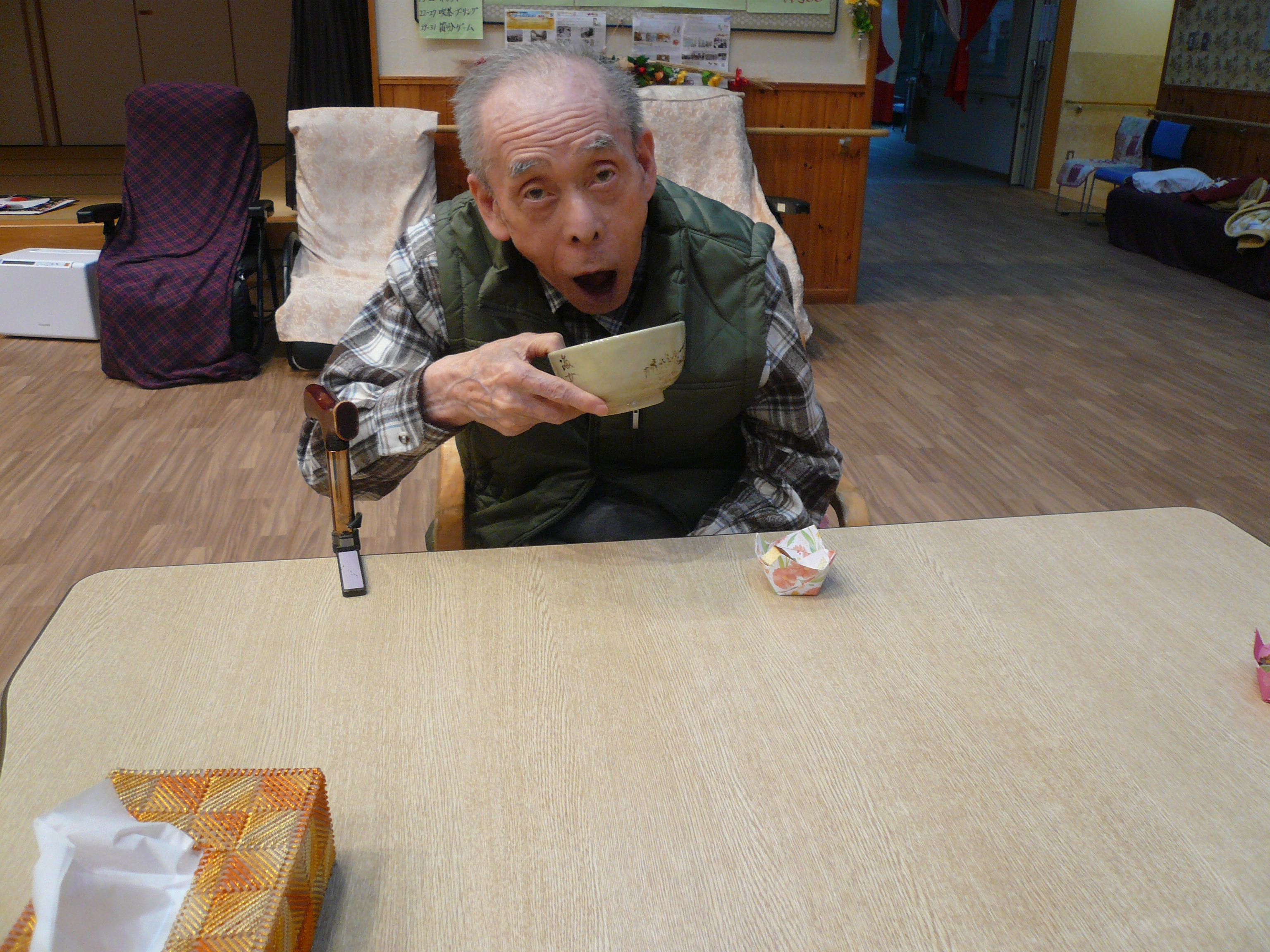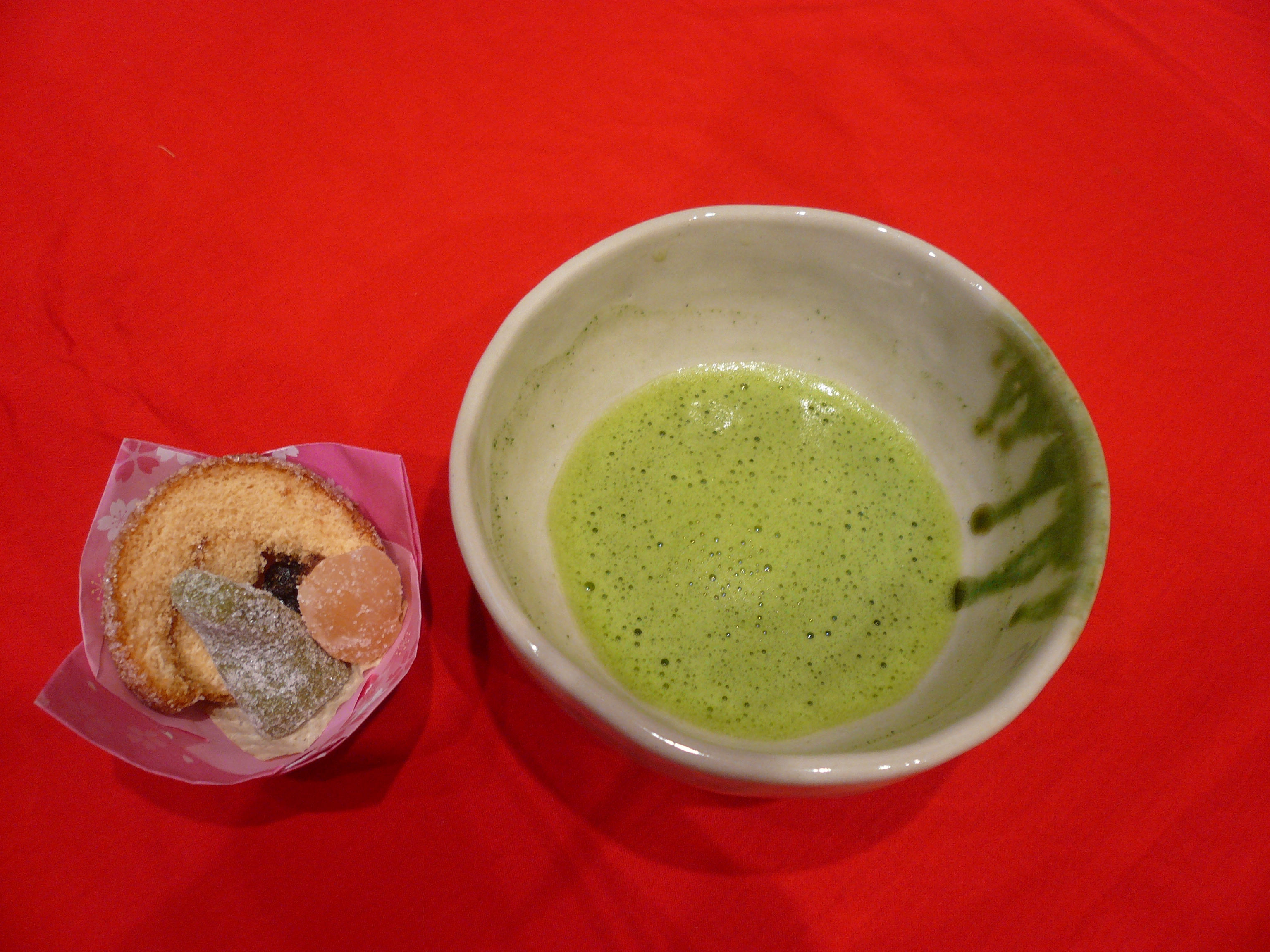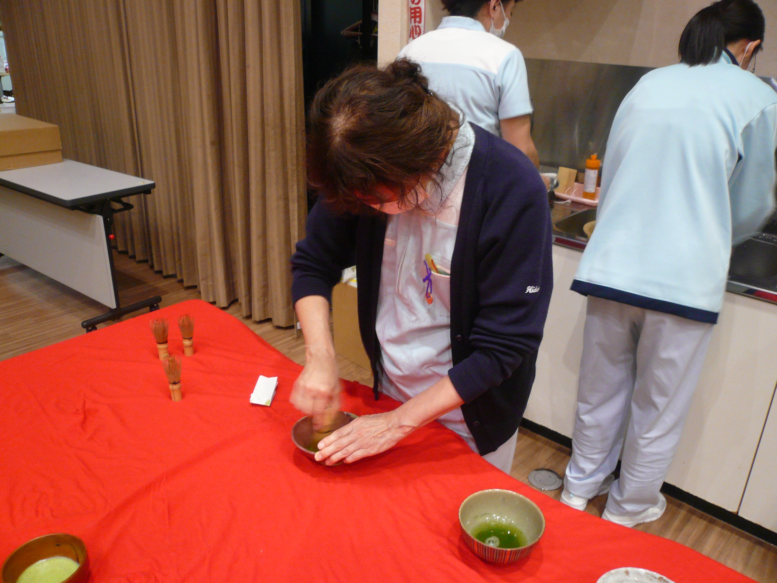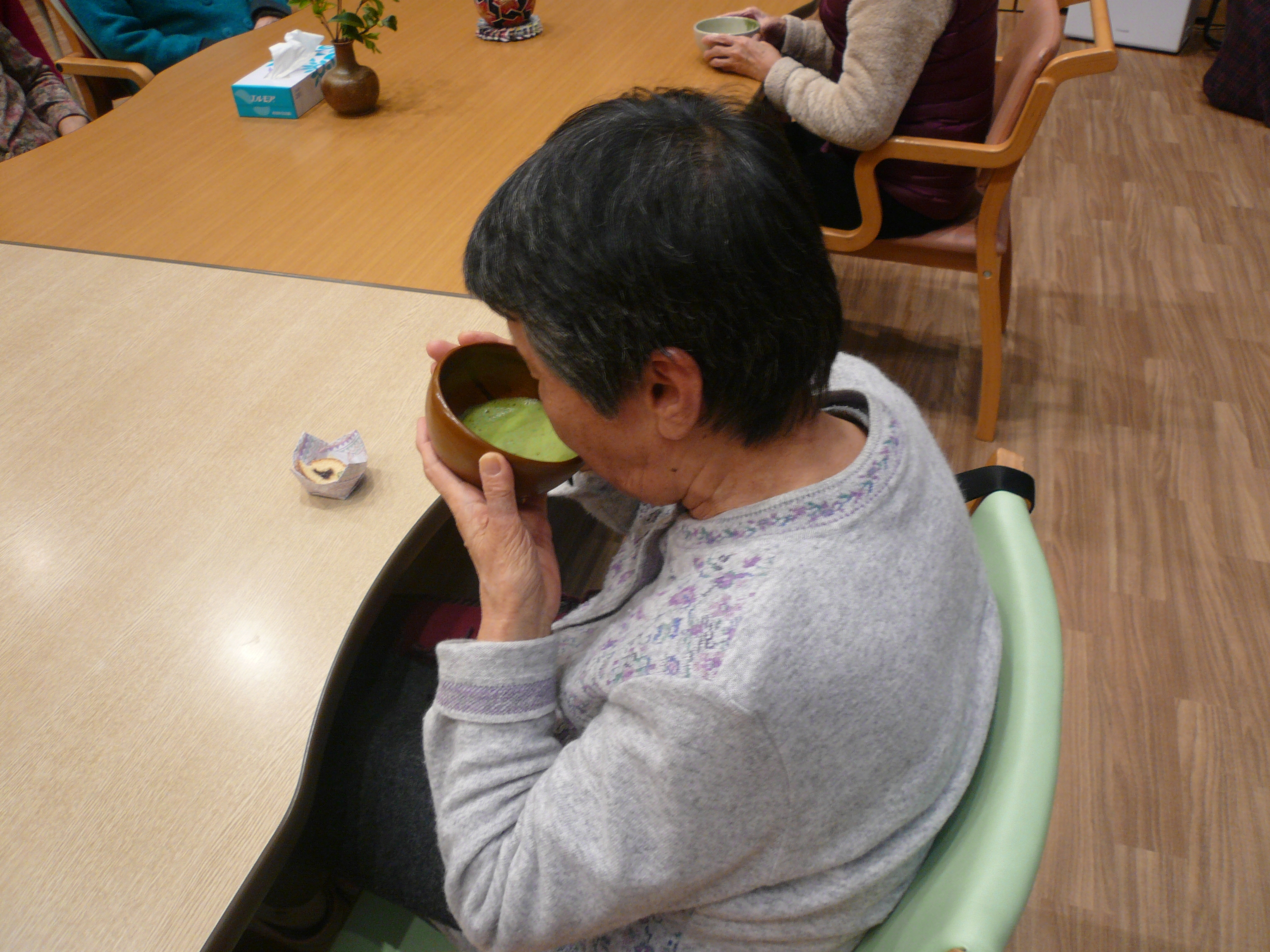 職員一つ一つ手作りの菓子入れとお抹茶を召し上がって頂きました。