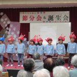 青島保育所すみれ組の10名の子供たちが来てくださり、明るく楽しい節分会になりました。