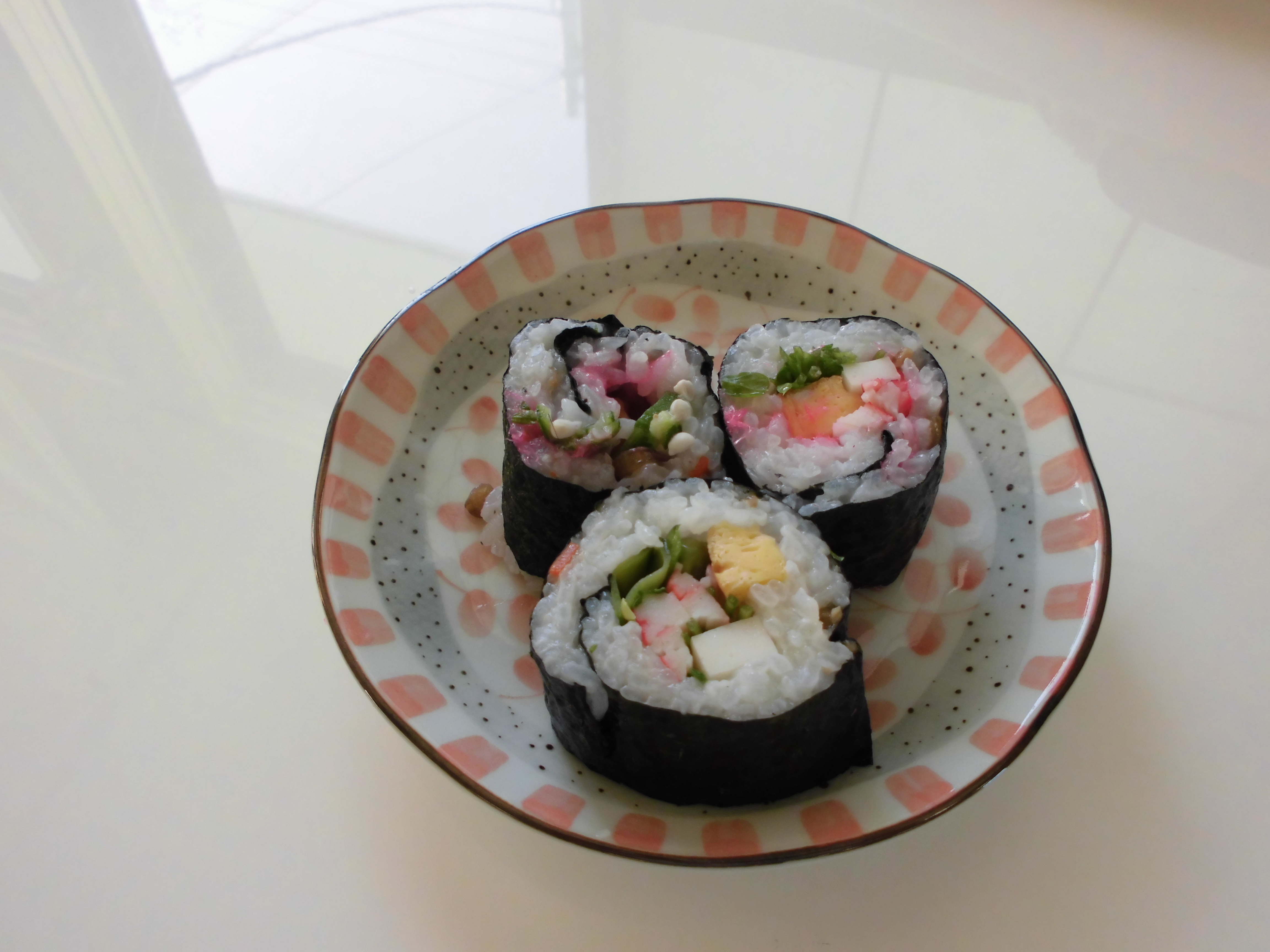節分の一日前の2日、職員(所長)が愛情をこめて巻寿しを作り昼食の一品として提供しました。