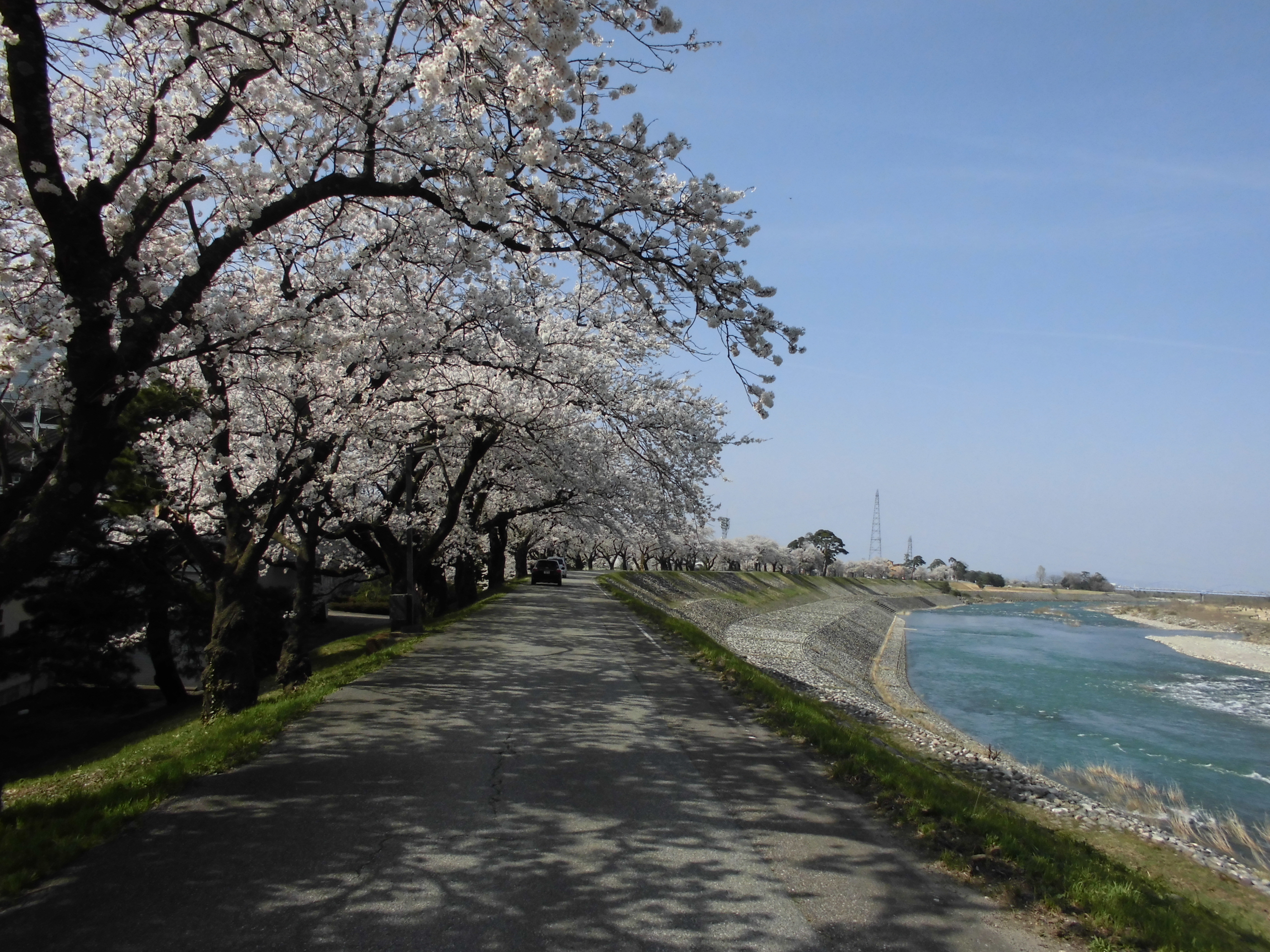 暖かい日、たくさんの方々が庄川堤防、水記念公園などに桜を見に来られてました。