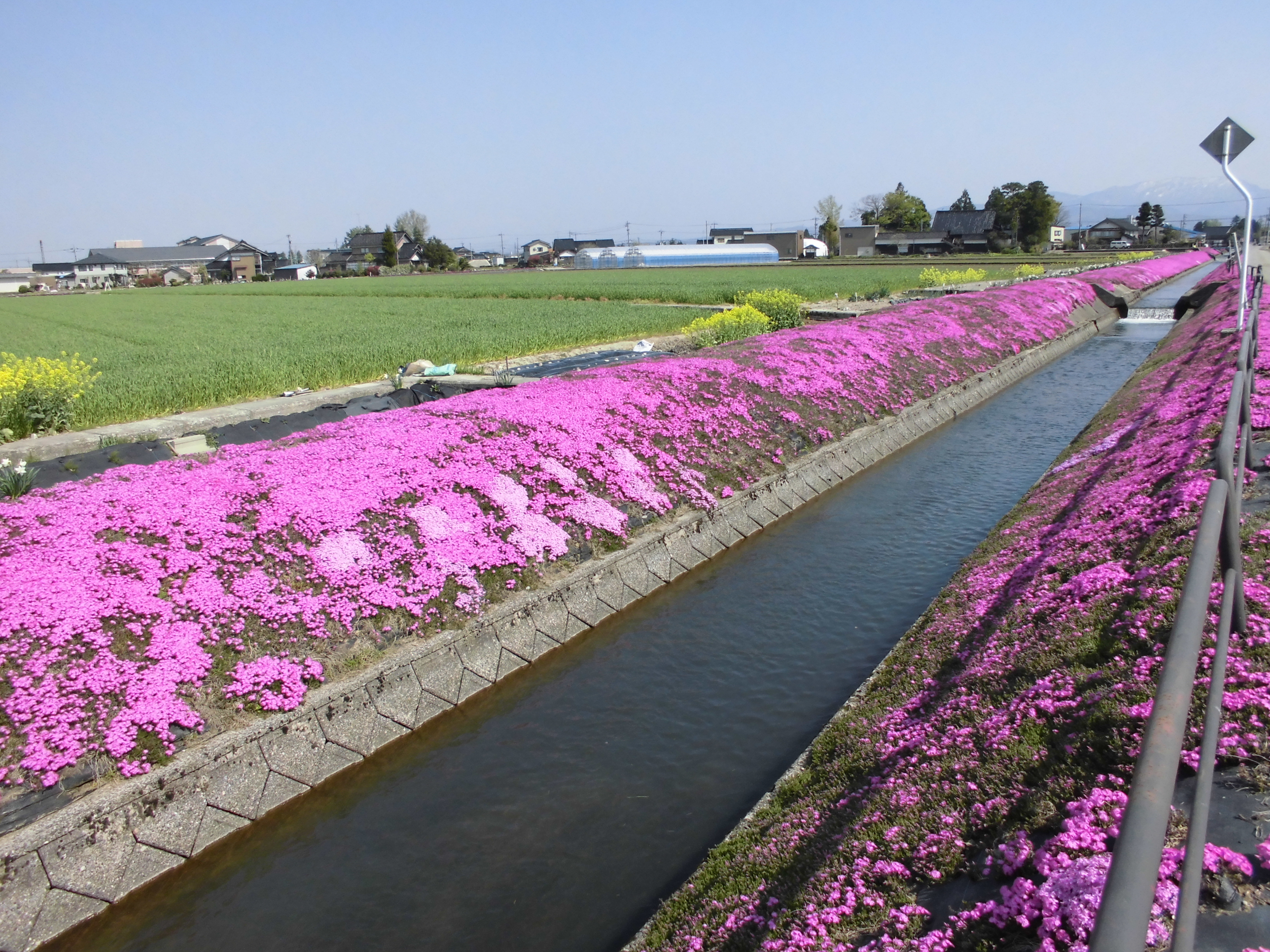 天候も良く川沿い一面に見事な芝桜がじゅうたんのようでした。