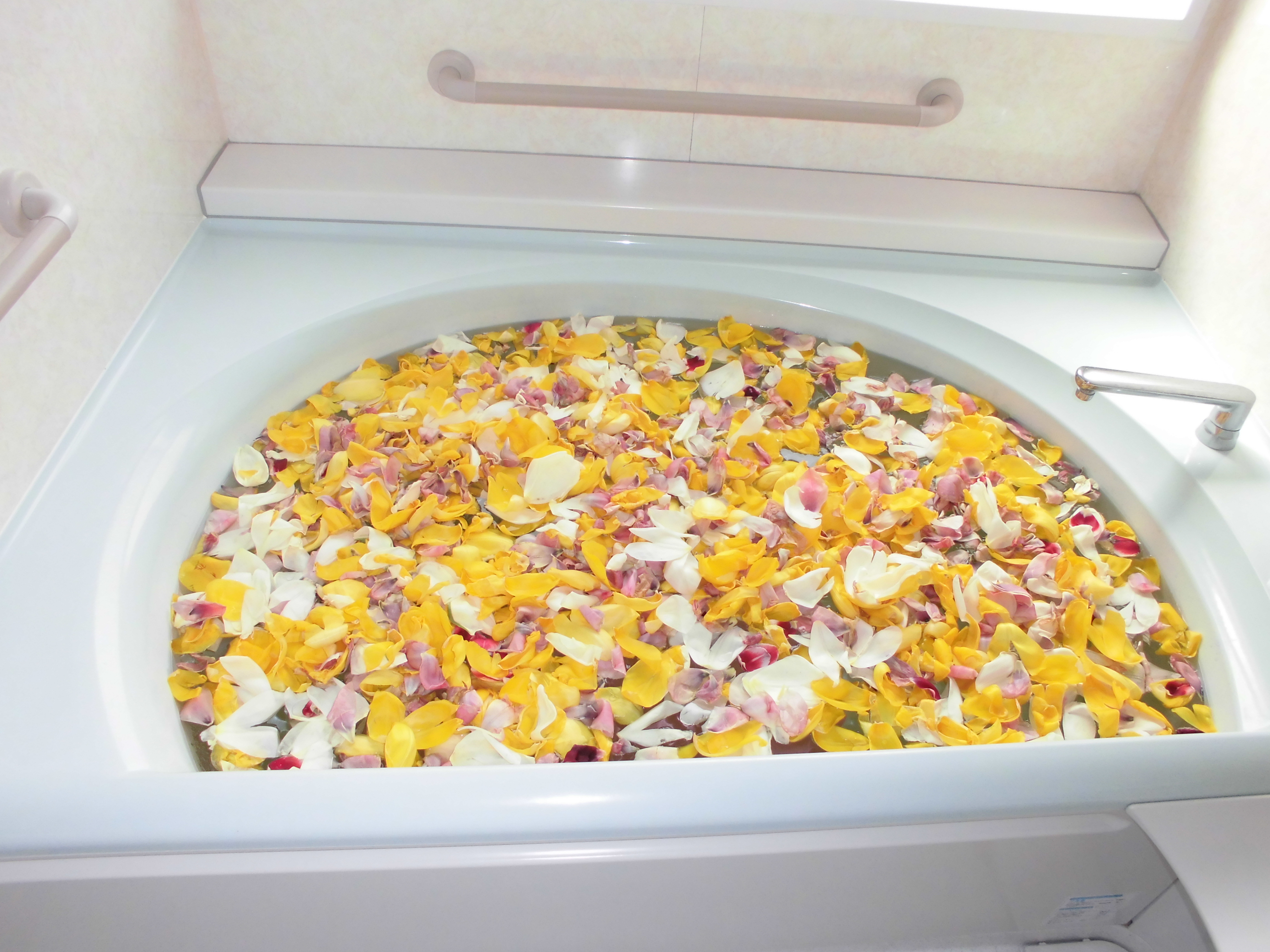 ゆずの木のお風呂に花びらを浮かし入浴して頂きました。