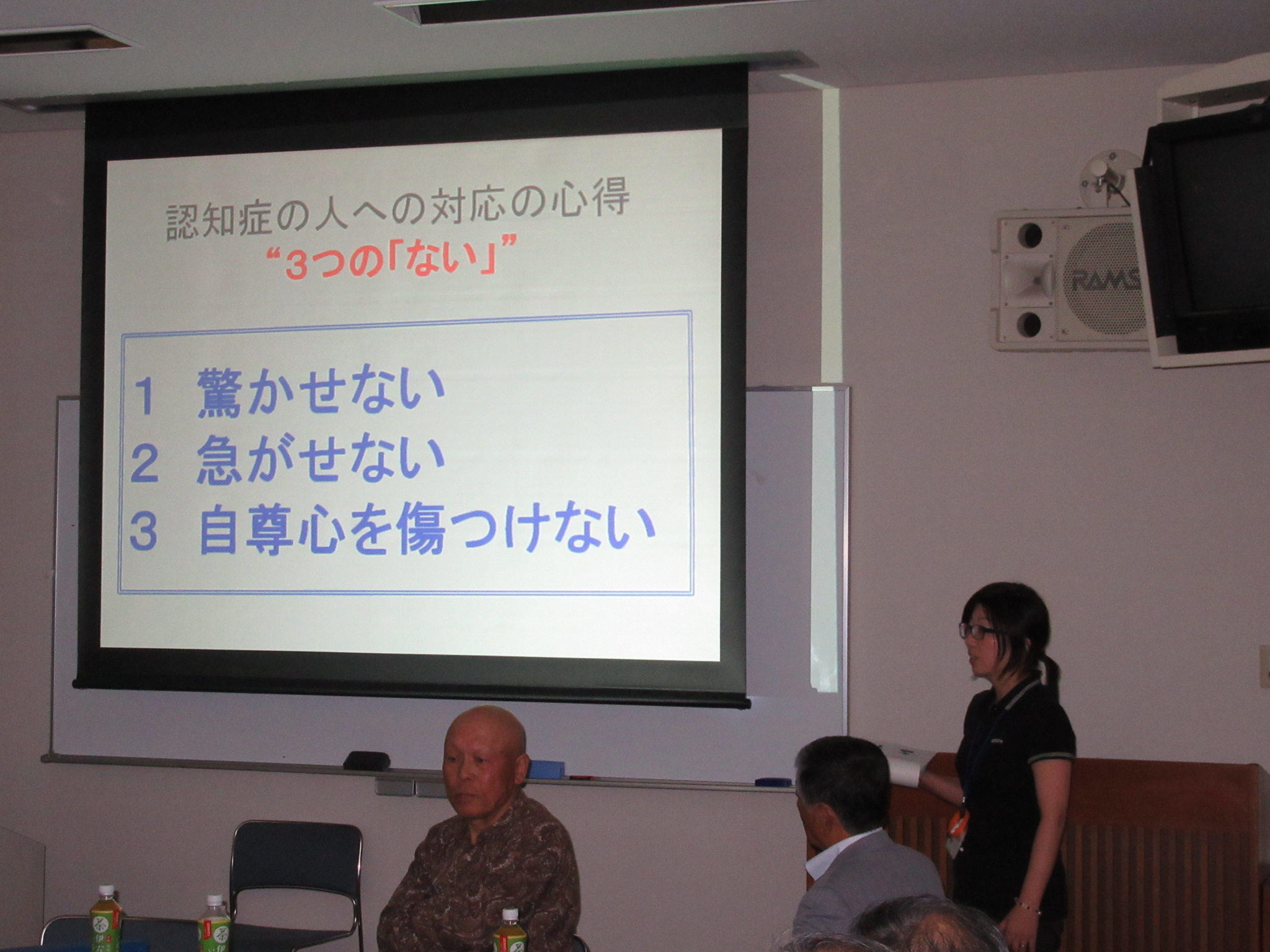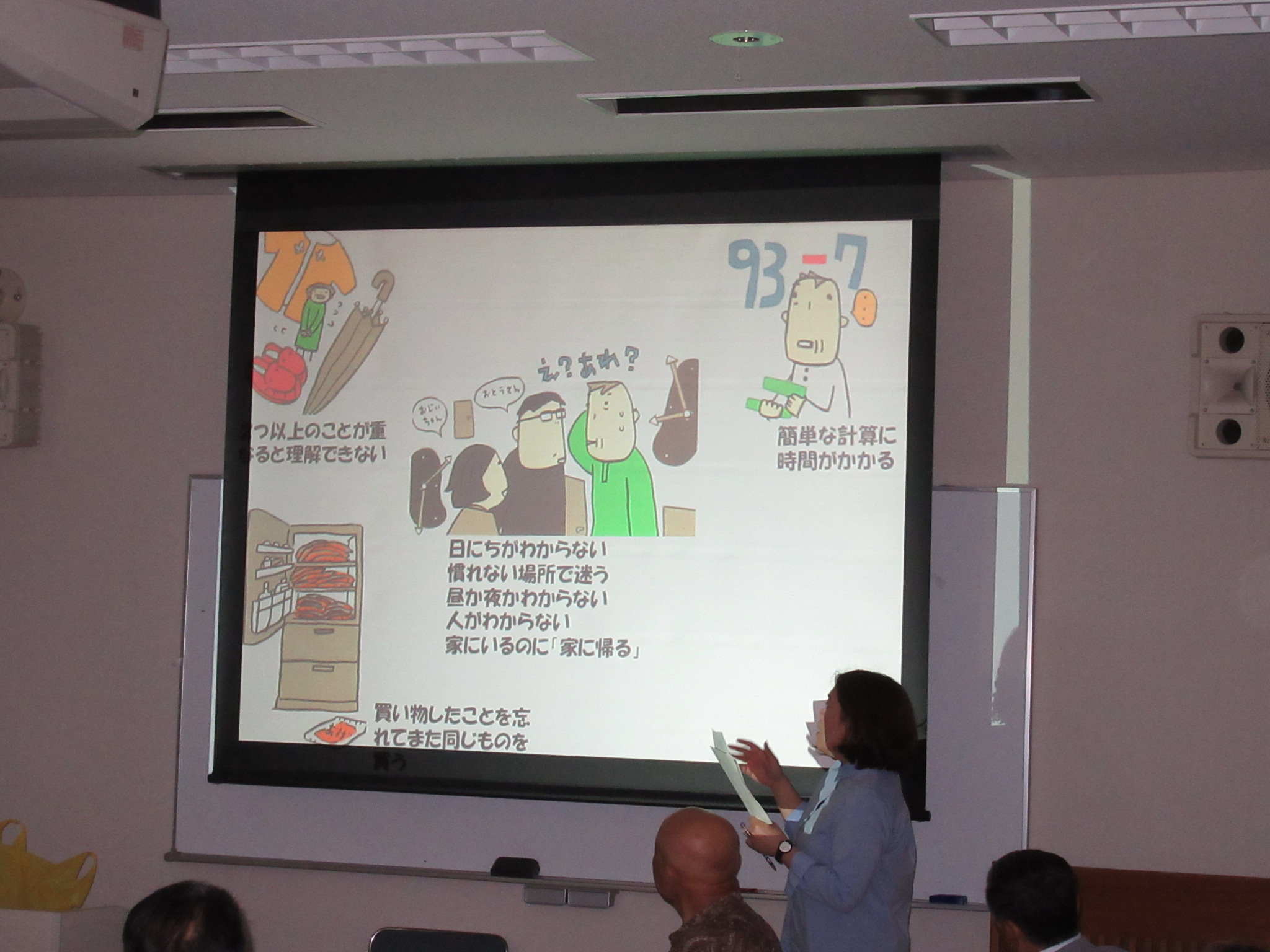 講義では、認知症の症状や認知症の方への対応方法、原因と予防・治療などについてお話ししました。