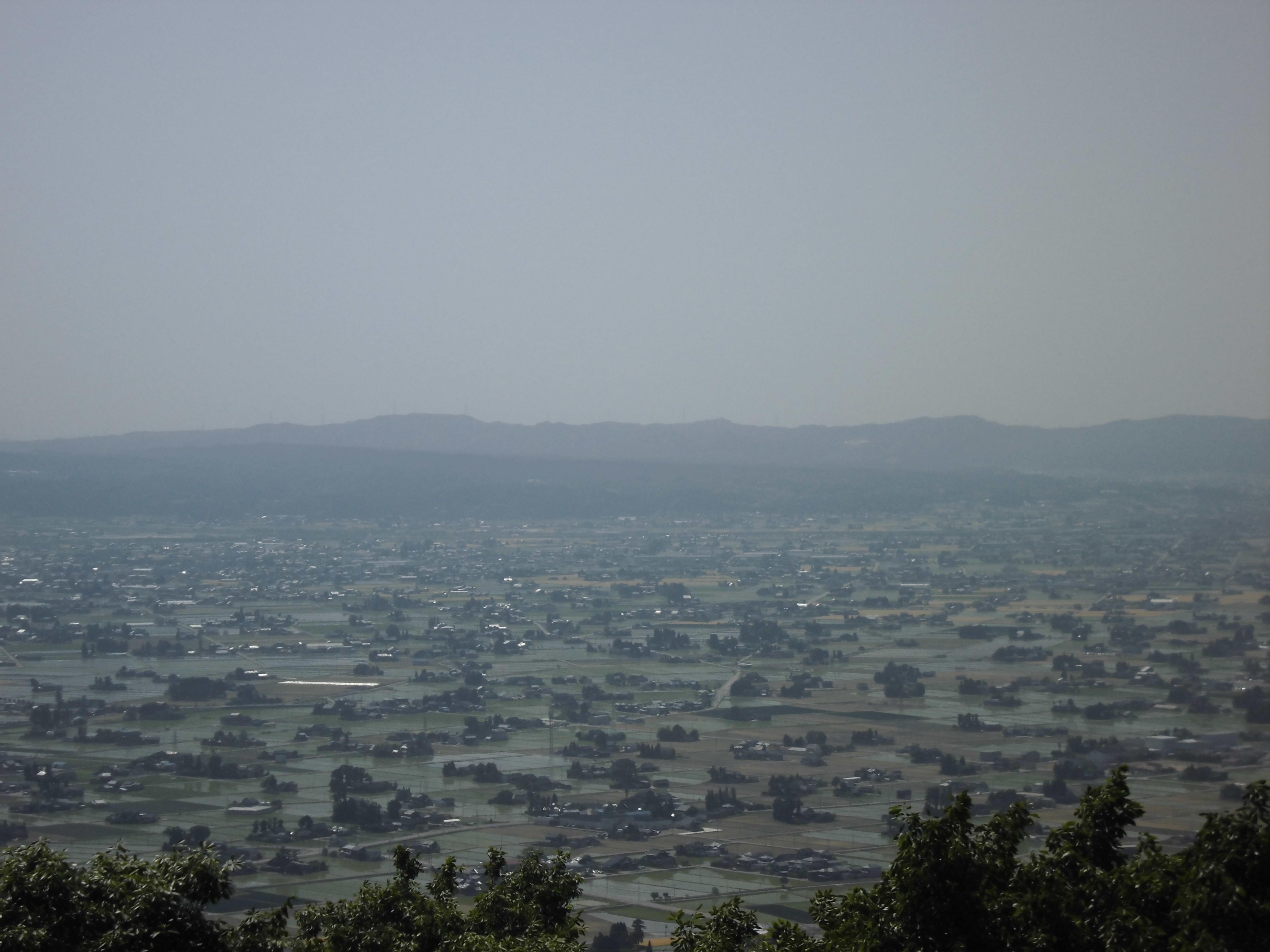 快晴の今日、砺波市八伏山にある散居村展望広場へ出かけ新緑の木々や砺波散居村を見て