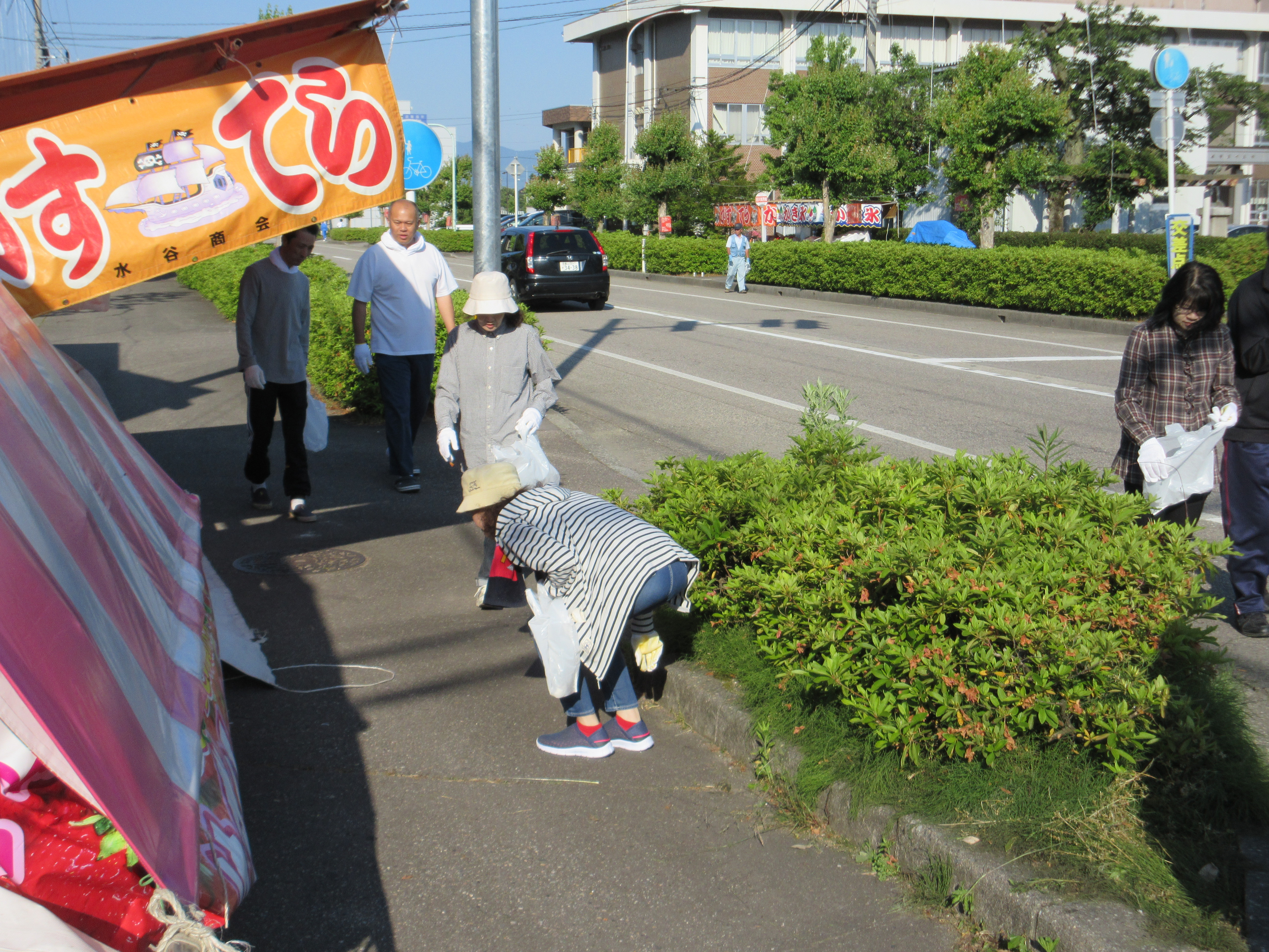 6月3日(日) 東となみロータリークラブさんの主催で、庄川観光祭に伴うゴミ拾い活動(庄川クリーン大作戦)が行われ、ケアポート庄川職員も参加しました。