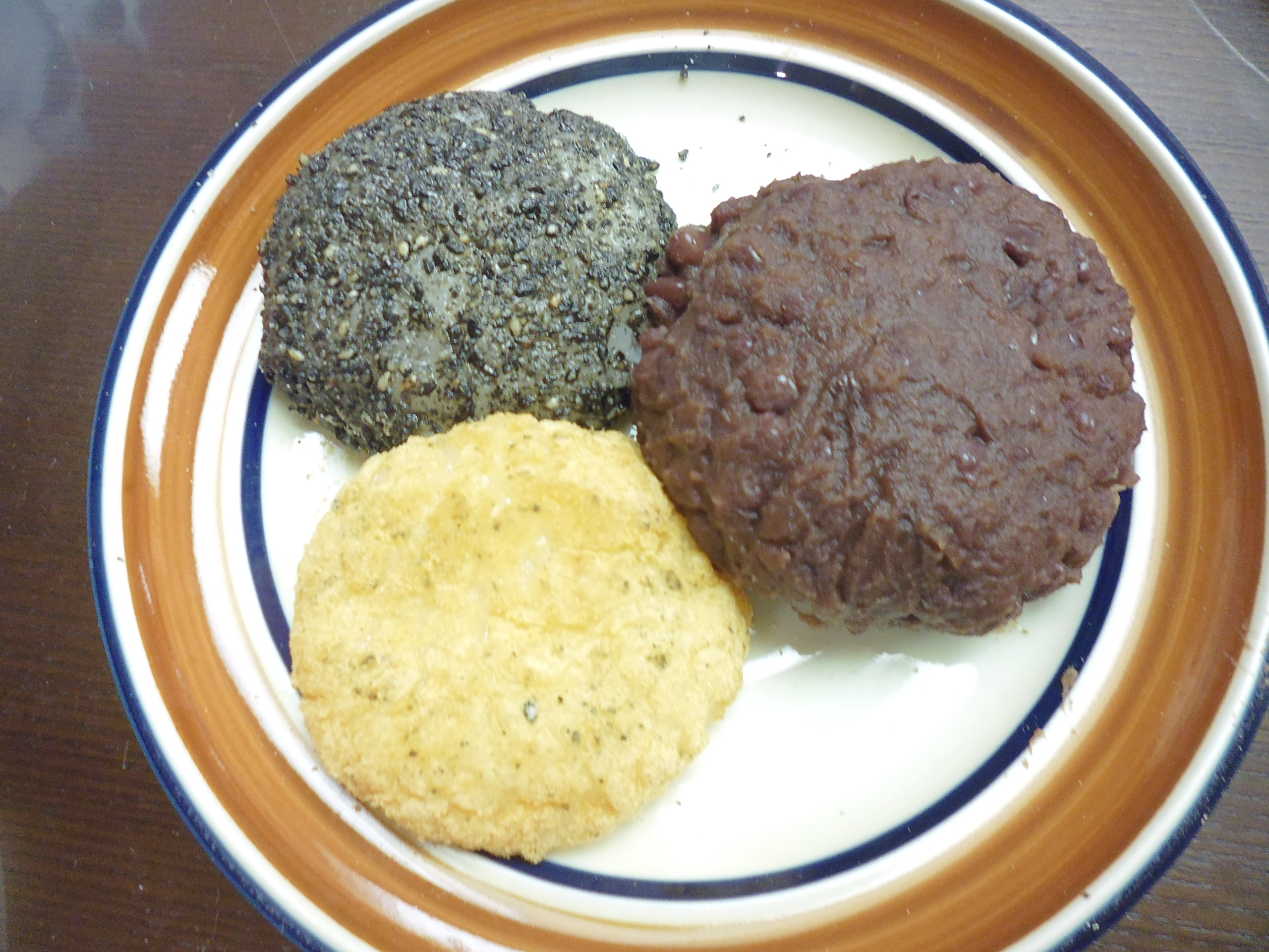 慣れた手つきであんこ、きなこ、ゴマの3種類を作りました。