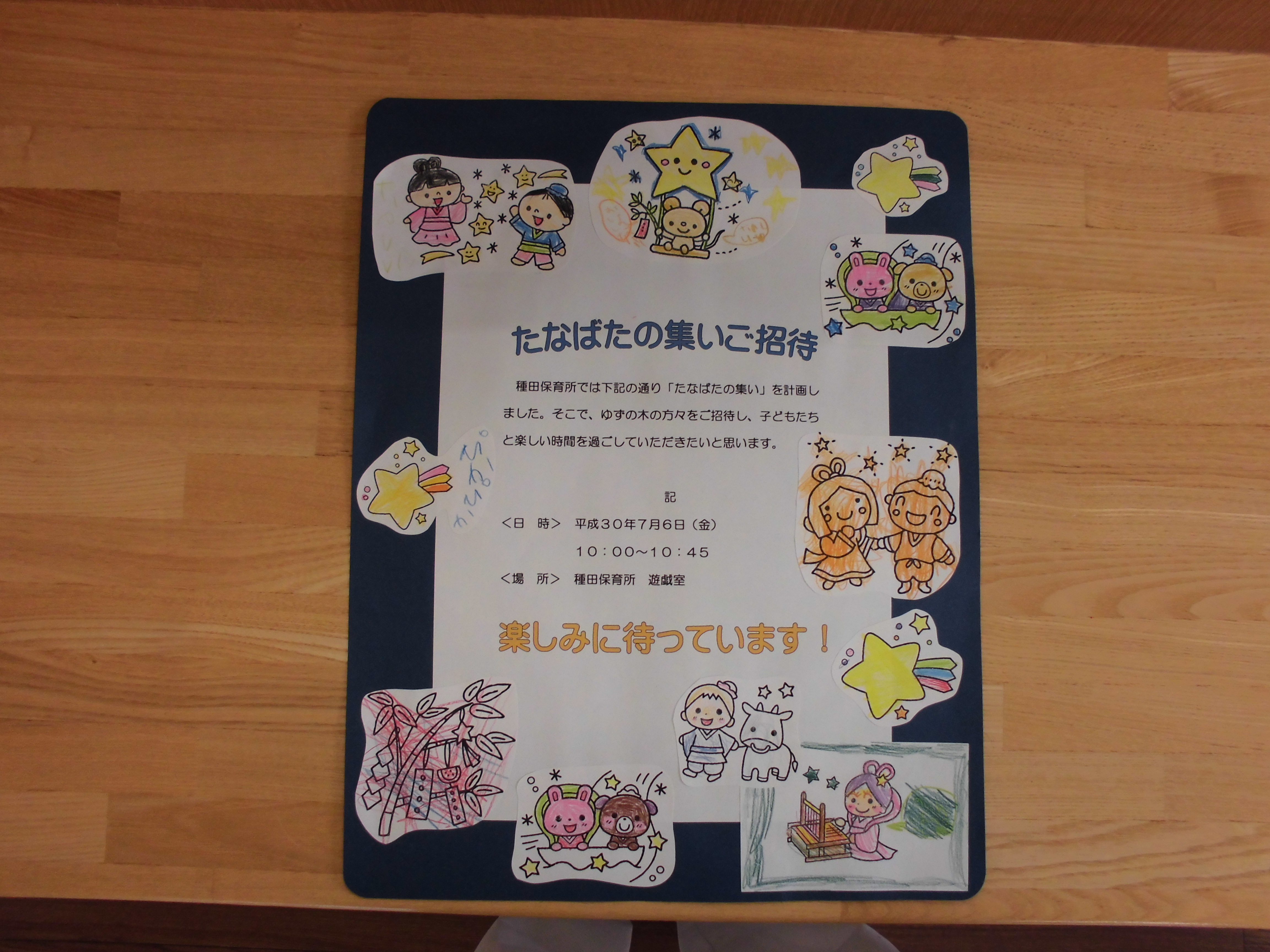 種田保育所の子供たち20人が「たなばたの集い」の招待状を