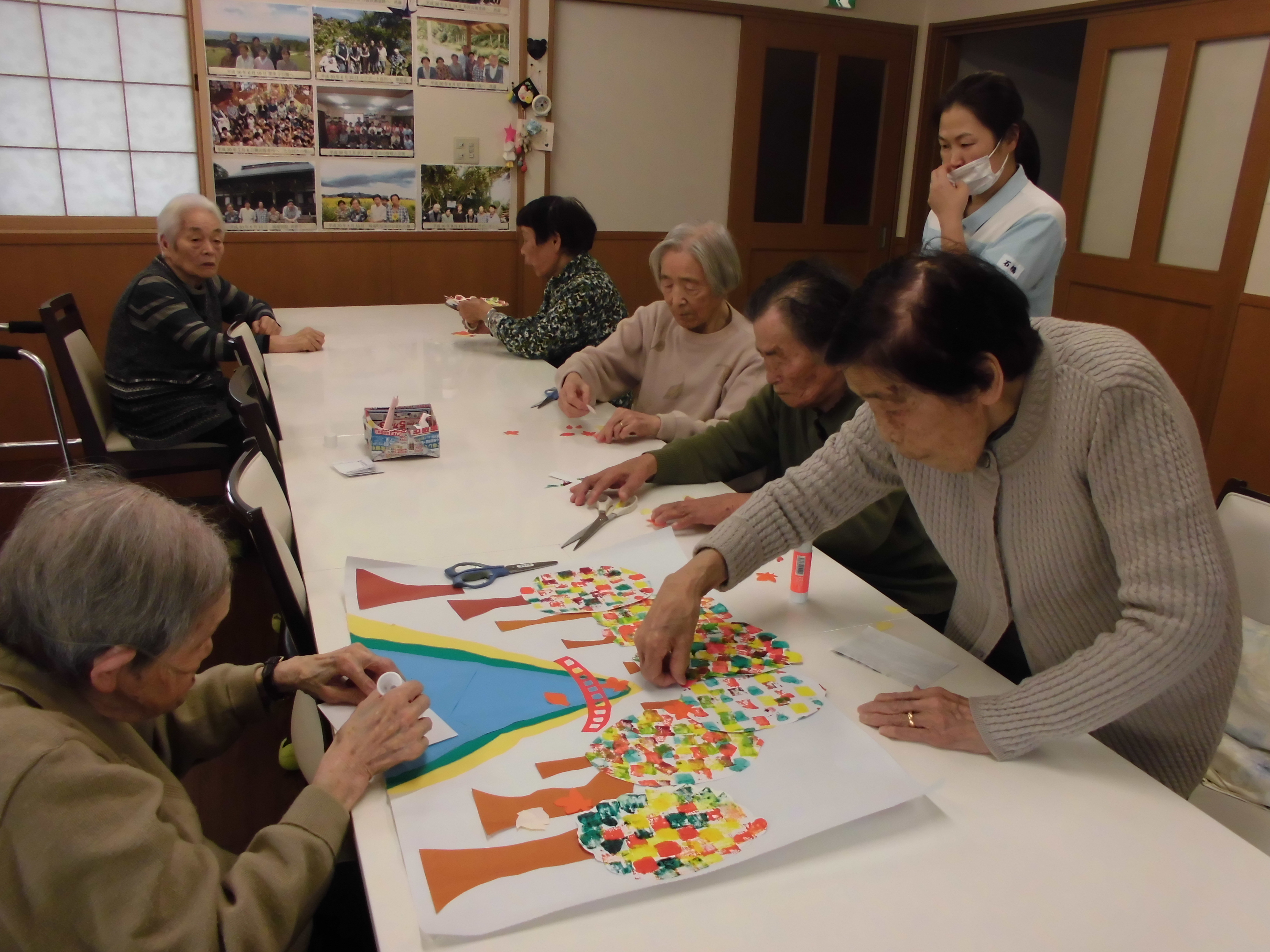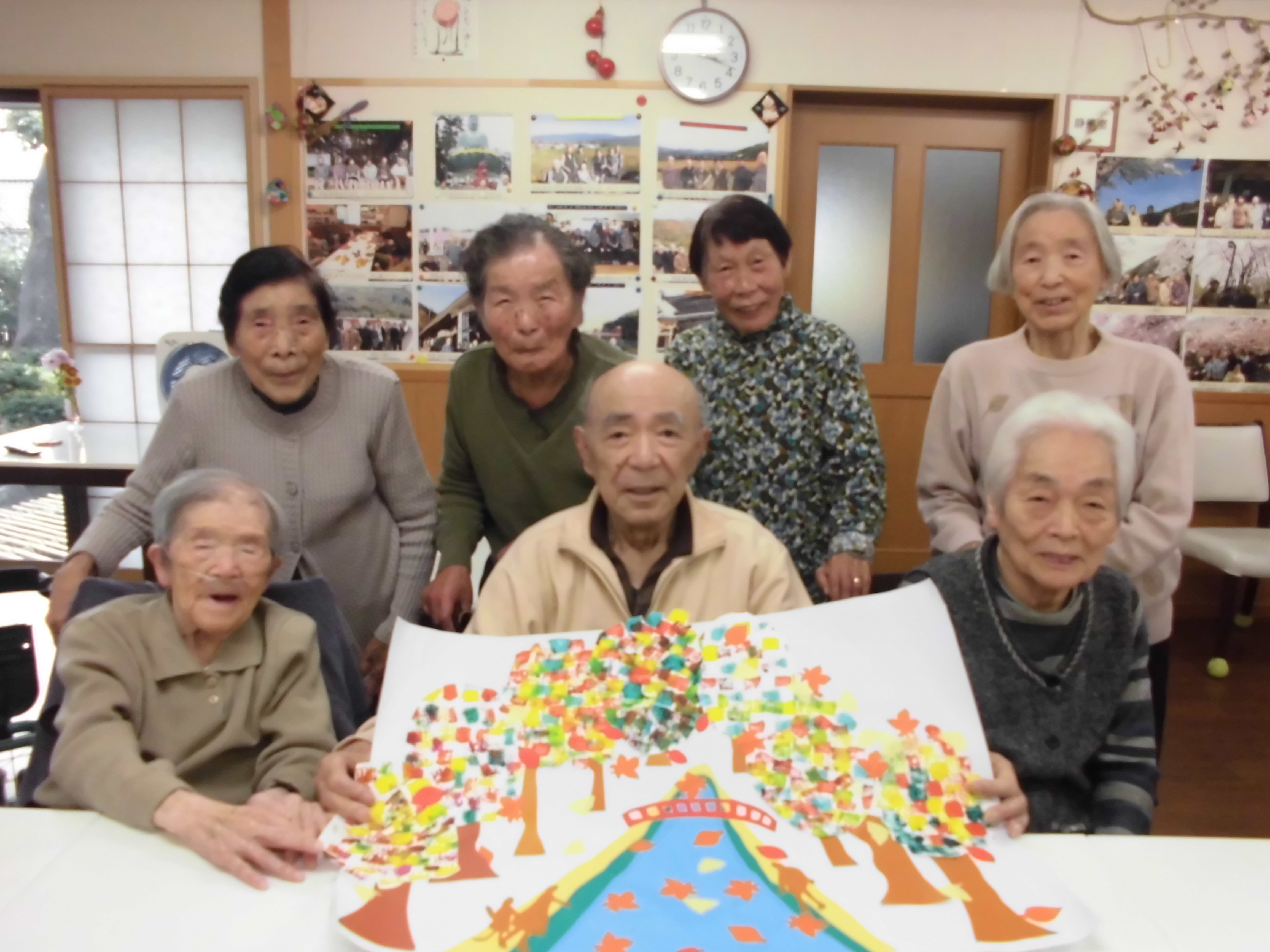 TOP > お知らせ > デイサービスゆずの木 > 壁画作り 秋の風景