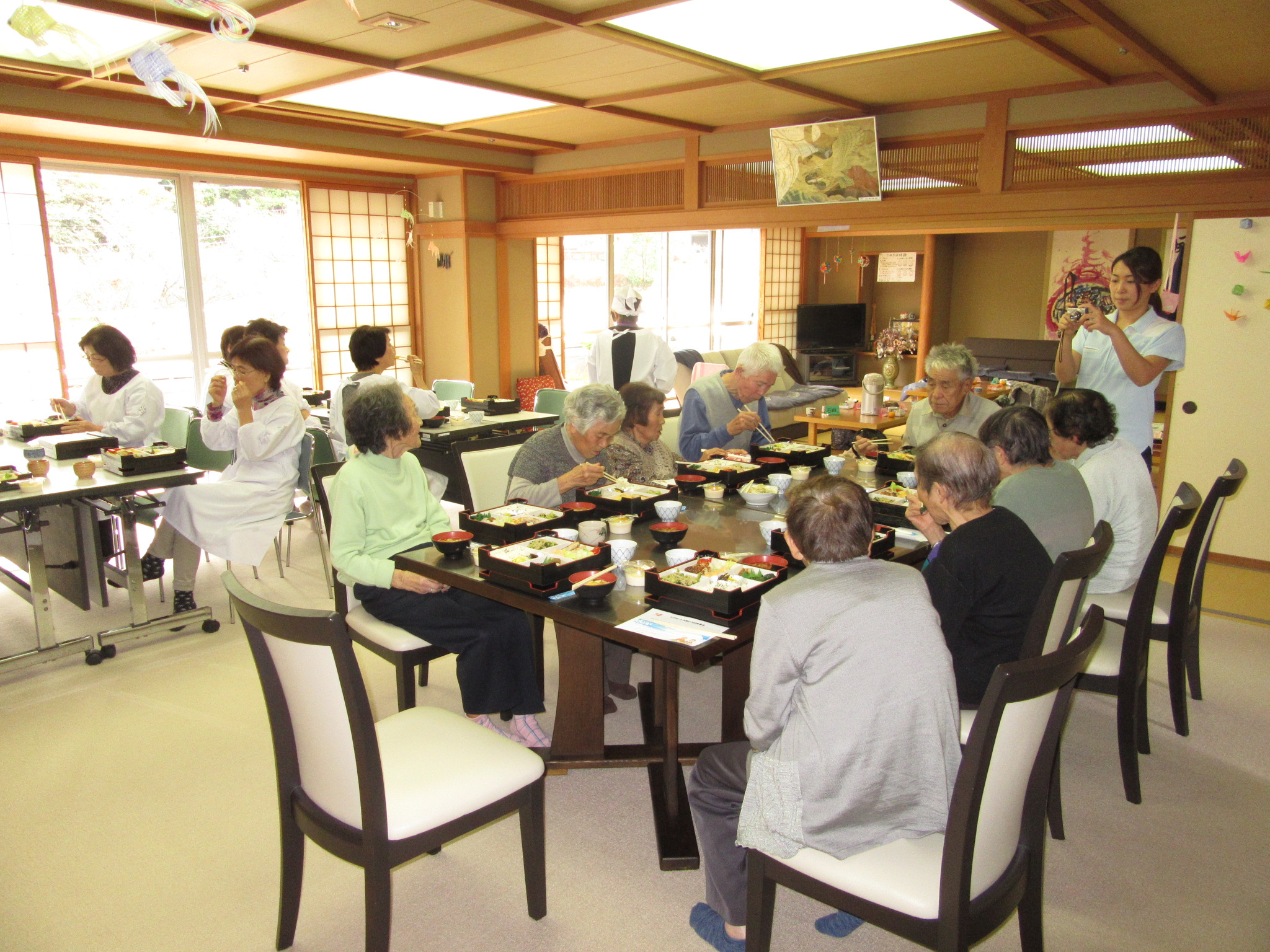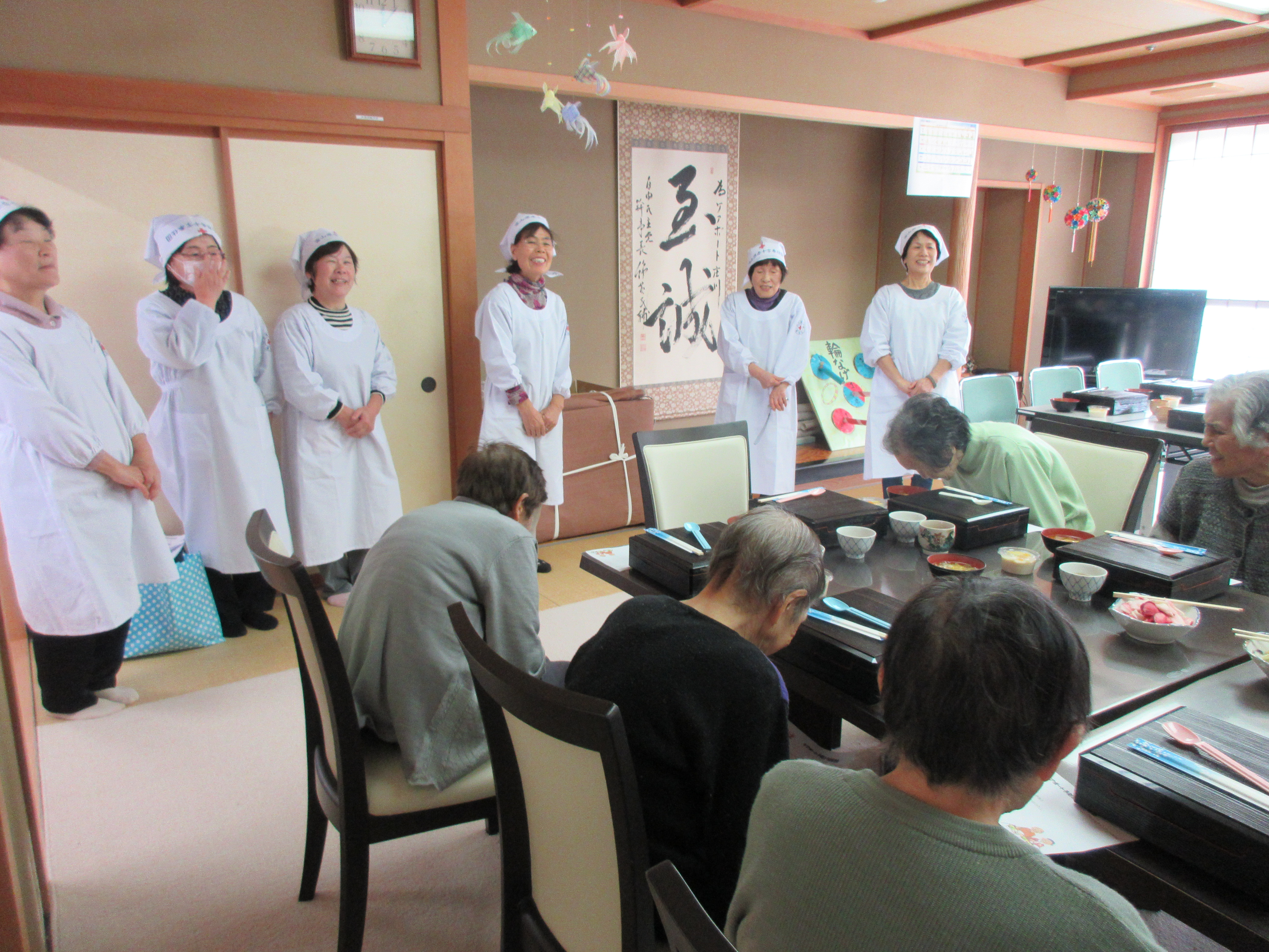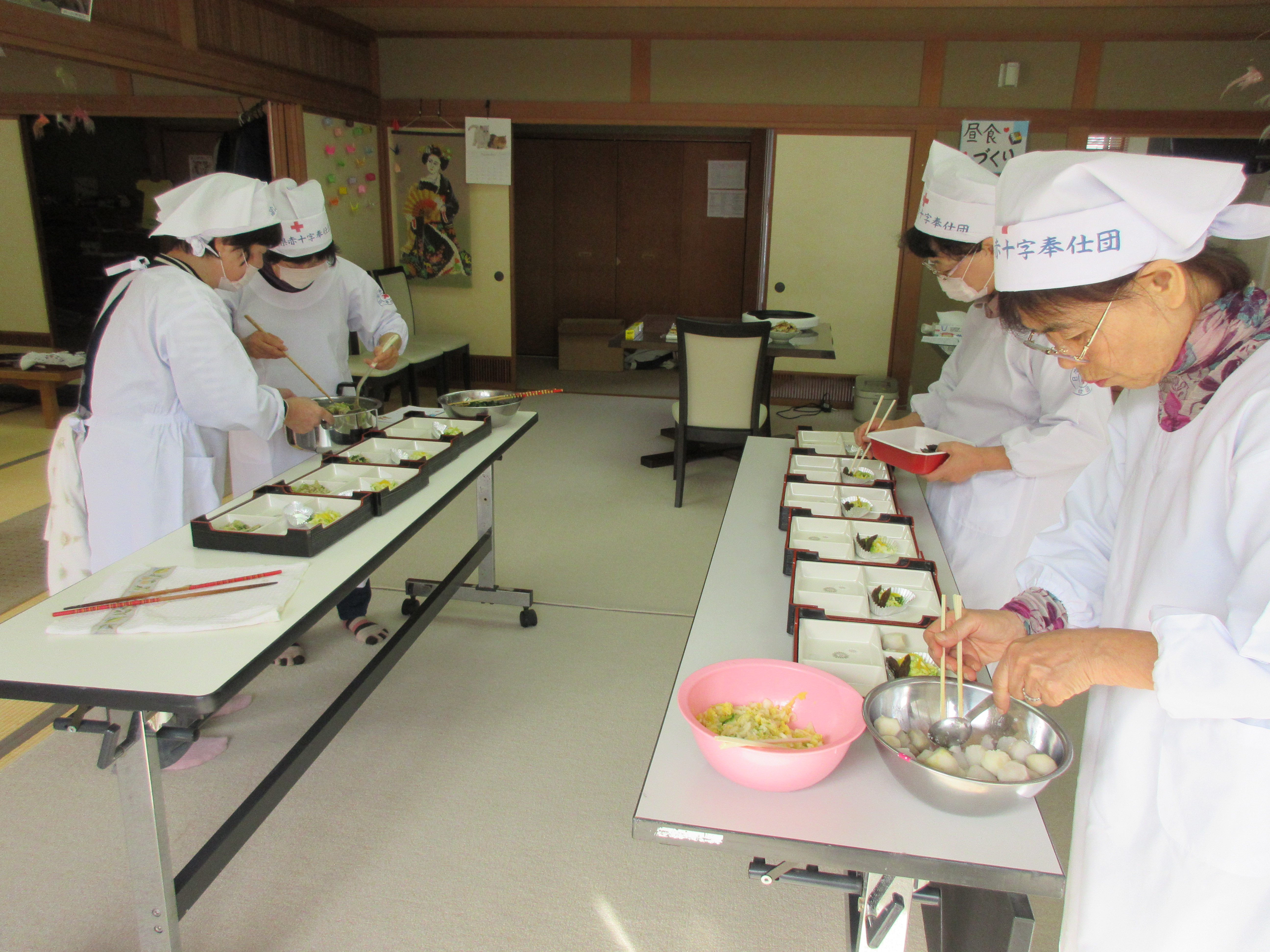 庄川町赤十字奉仕団様のご厚意により、利用者の皆さんと一緒に秋の食材を活かし調理実習をしていただきました。