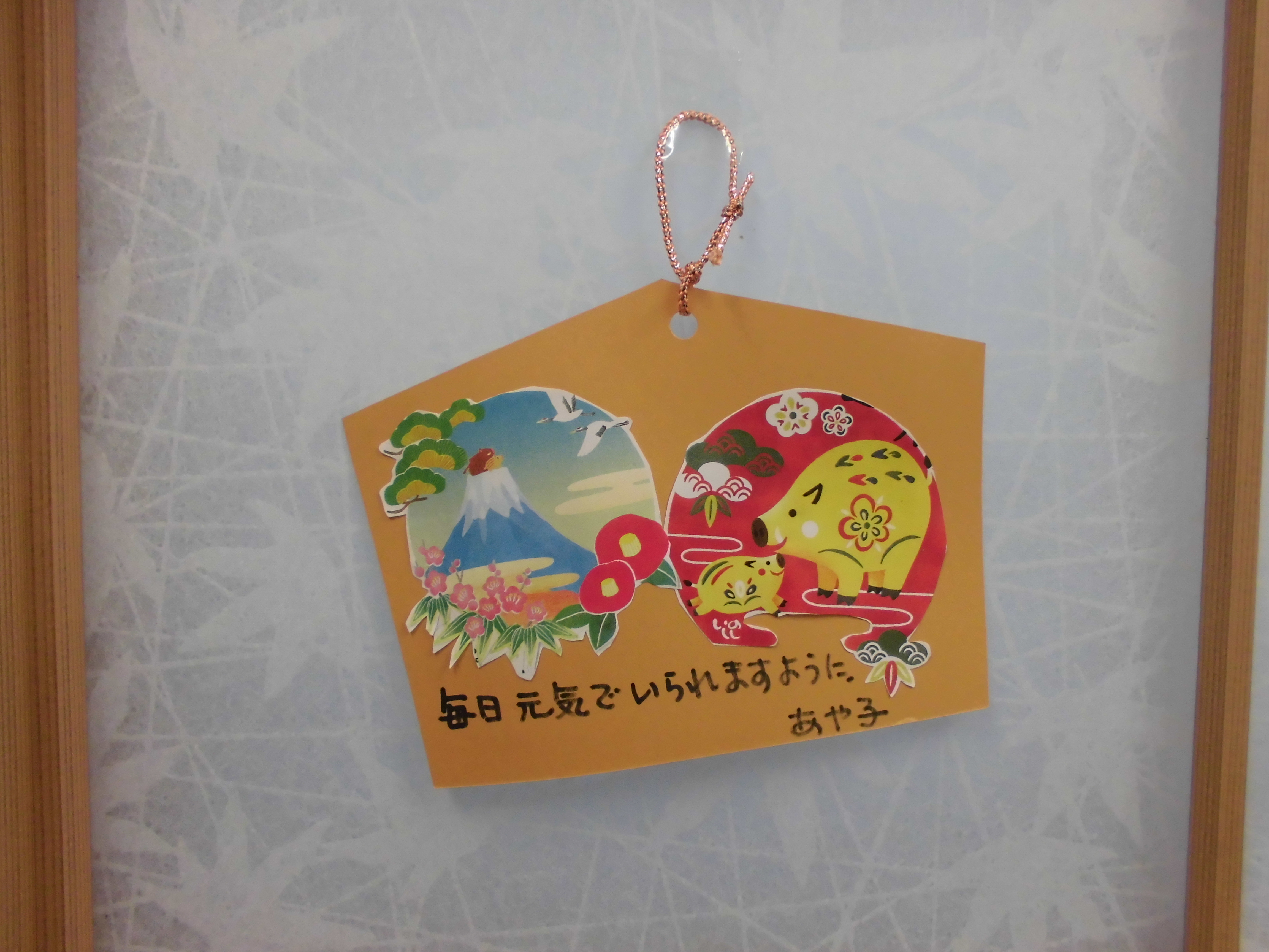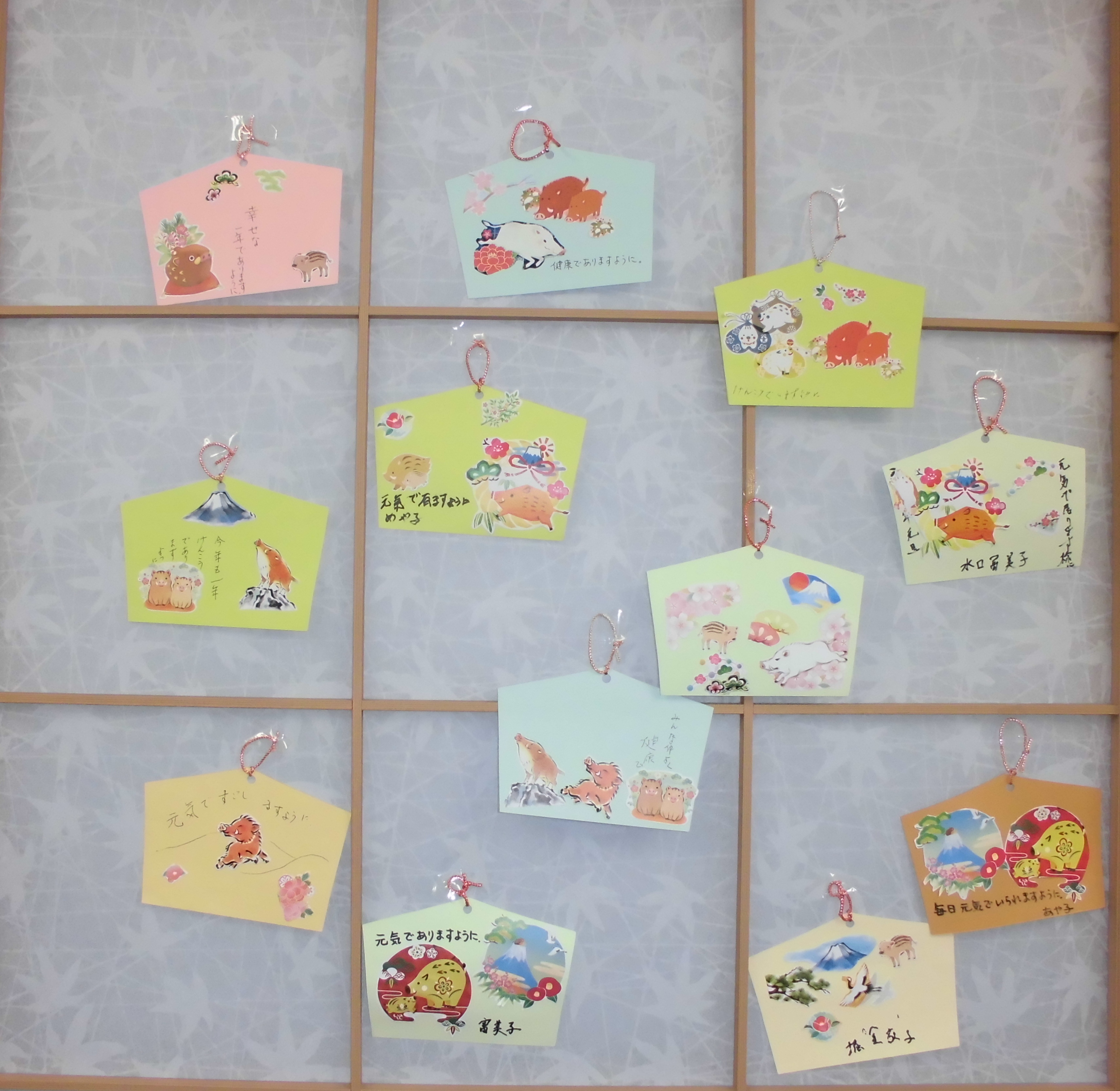 新年を迎えるにあたり皆さんで絵馬(?)を作りました。