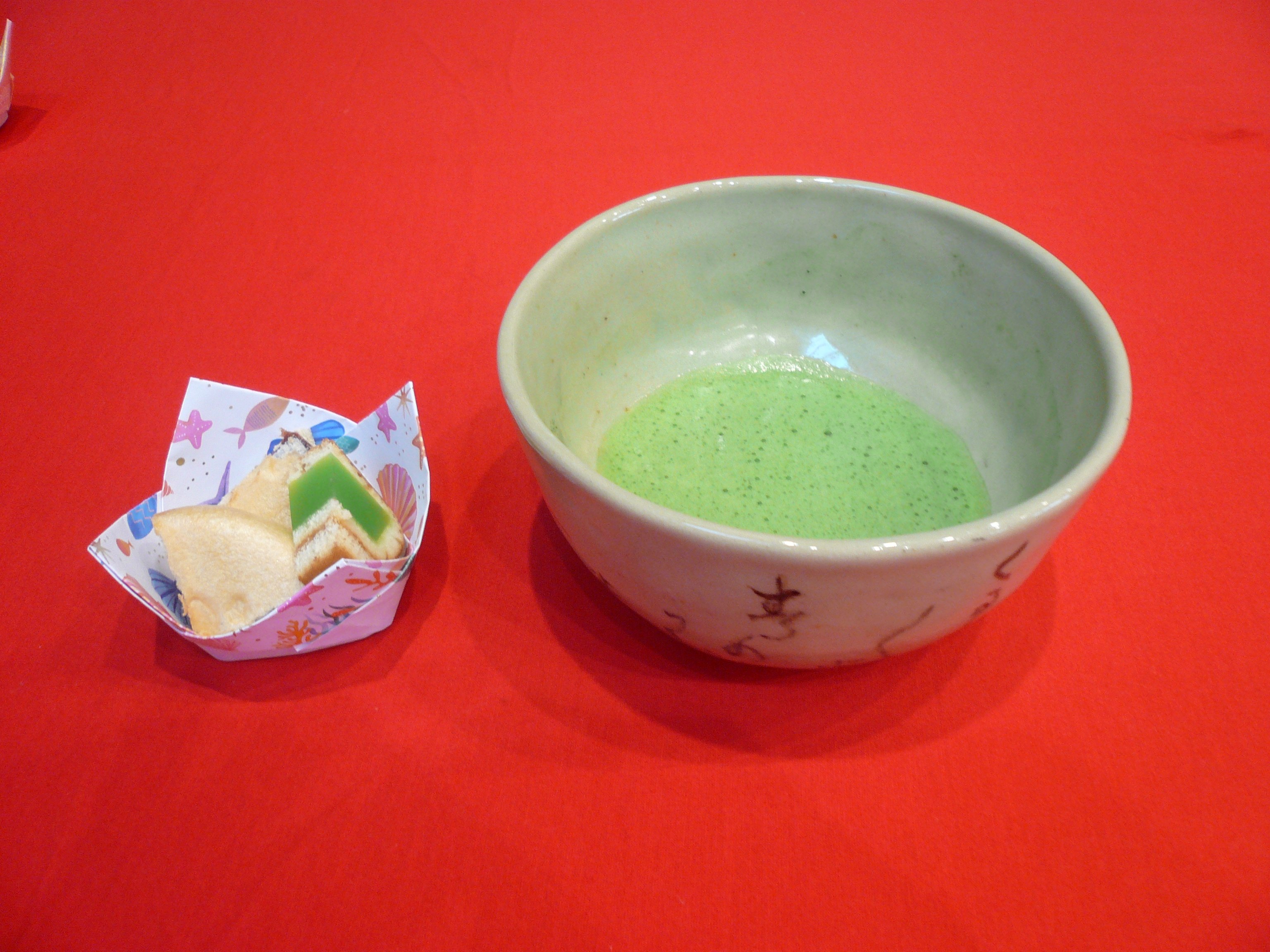 お抹茶をたてて、職員が作ったお菓子入れでお・も・て・な・し♡