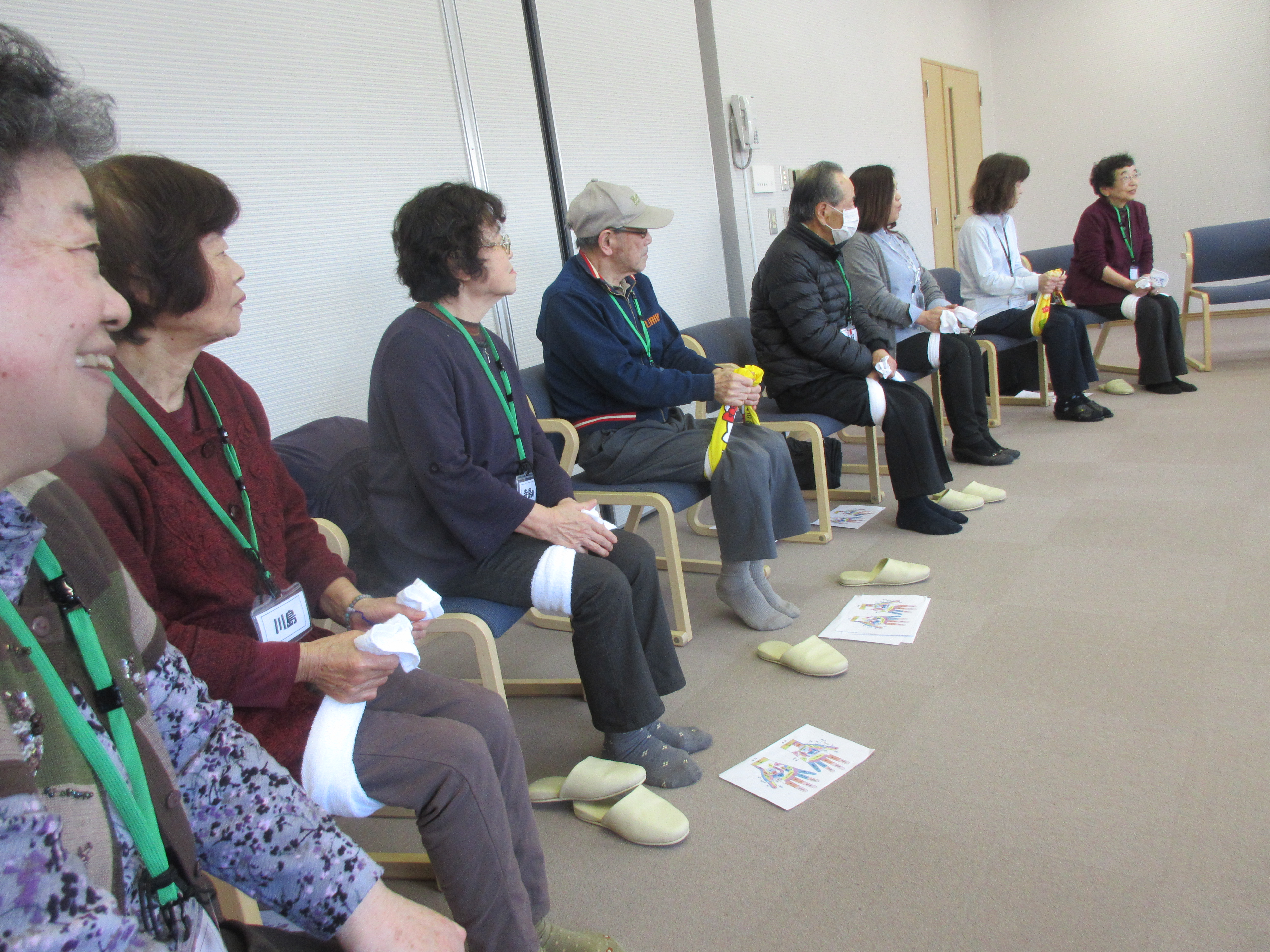 手を使っての脳トレ、ゴルフボールで筋膜リリースなど、皆さんで楽しく身体を動か
