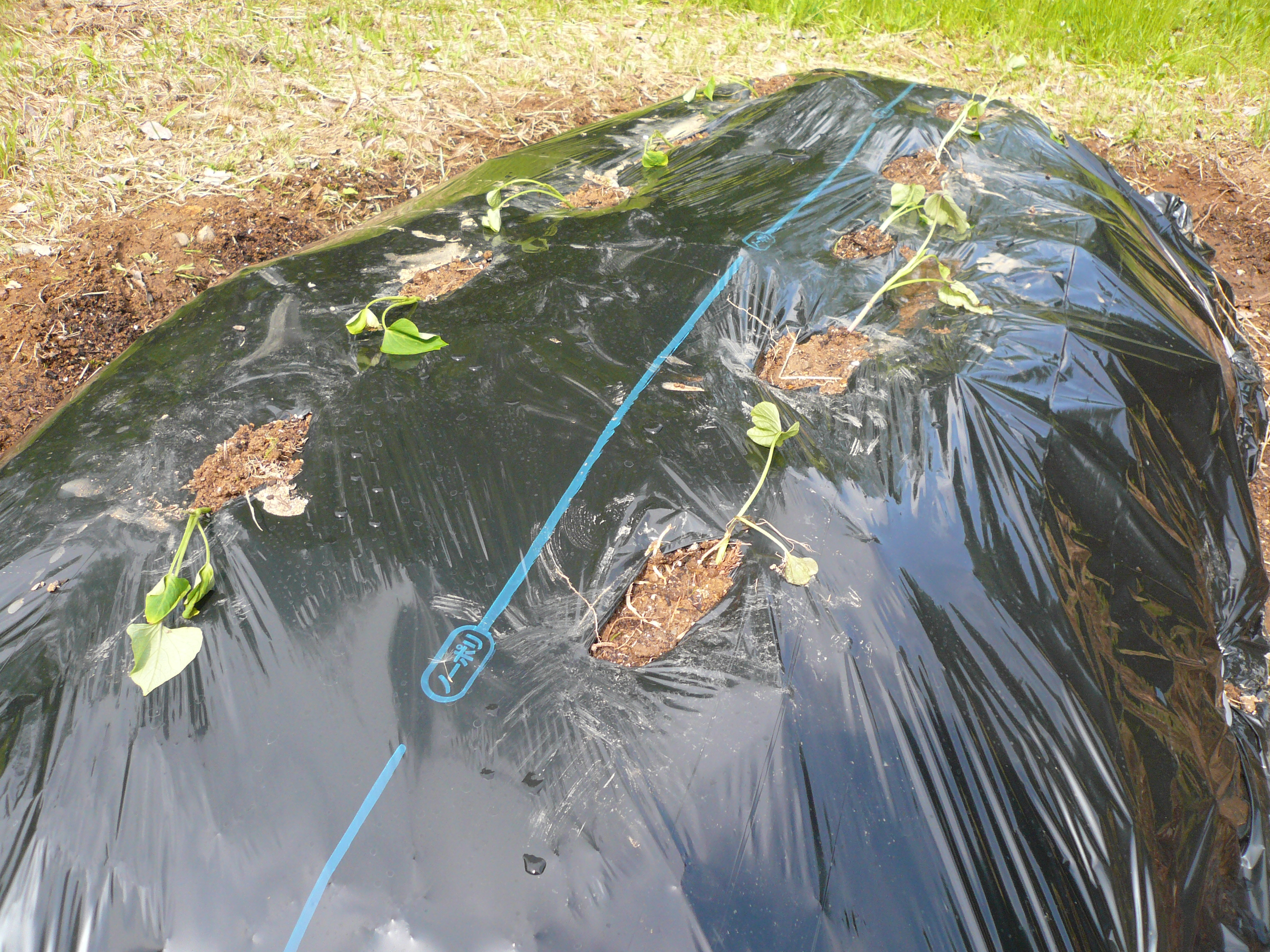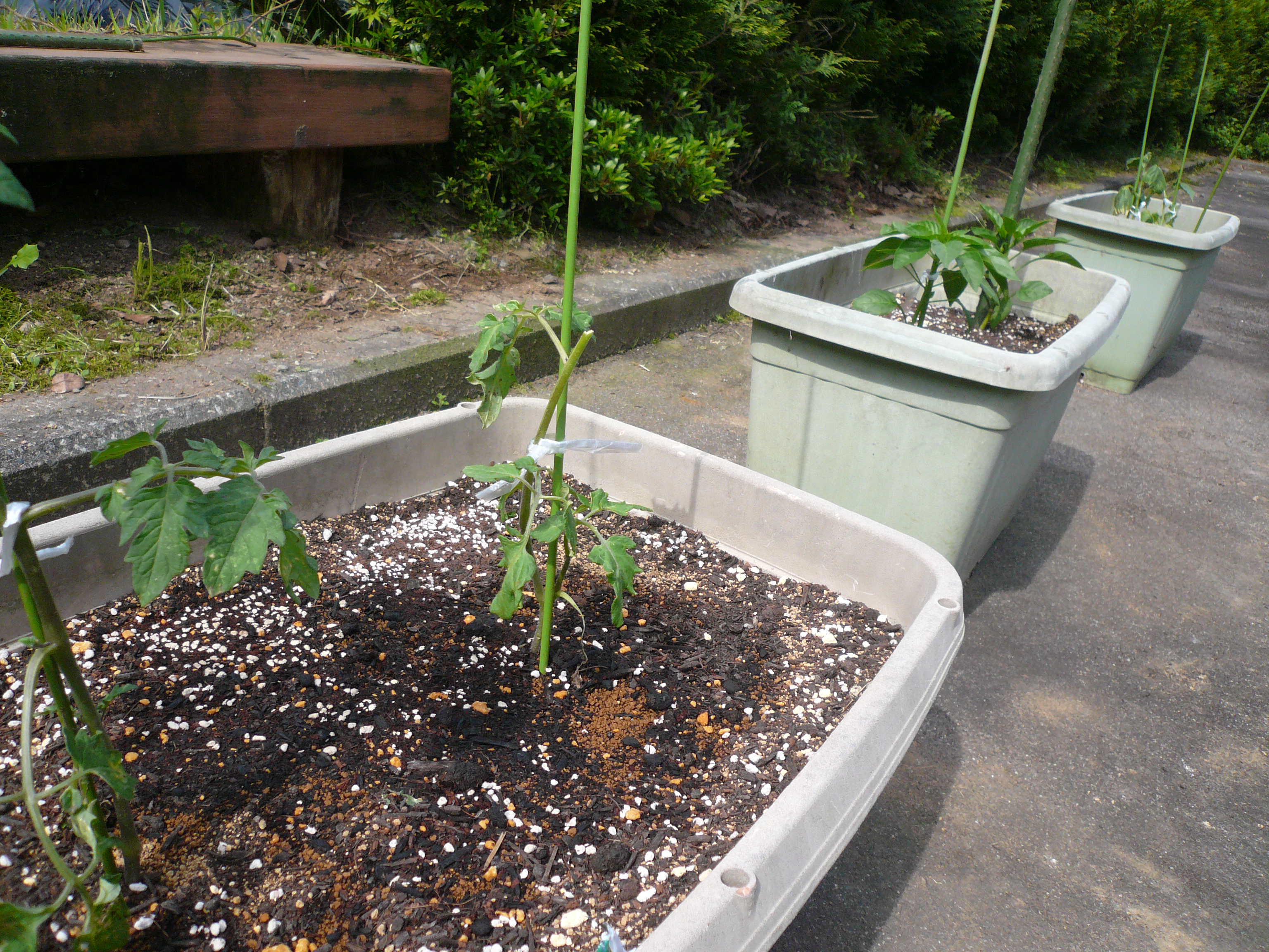 デイサービスできゅうり・ミニトマト・ピーマン・さつまいもを植えました。