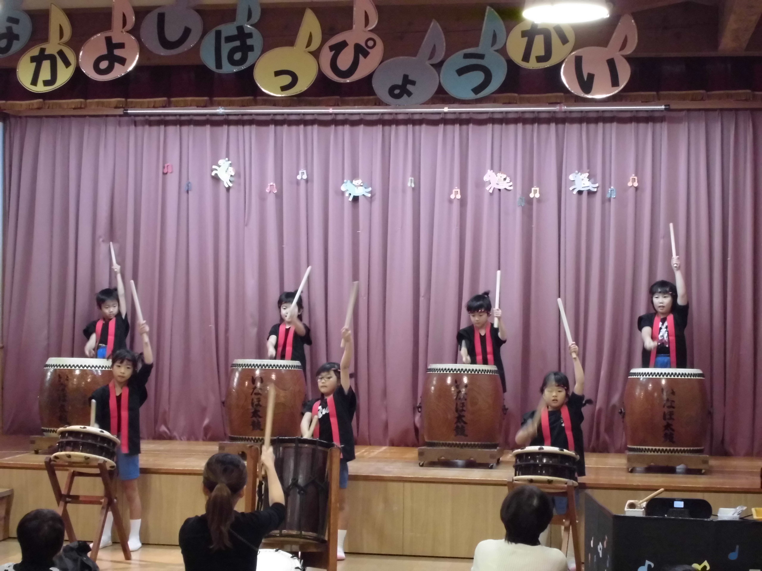 当日は防寒対策にひざ掛けを持参しました。たっぷりと2時間、子どもたちの素晴らしい太鼓の演奏やお遊戯などを見させていただきました。