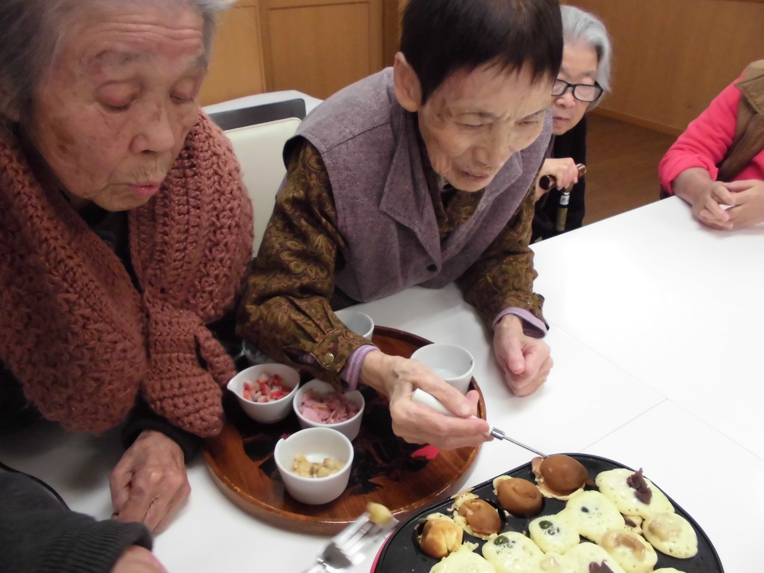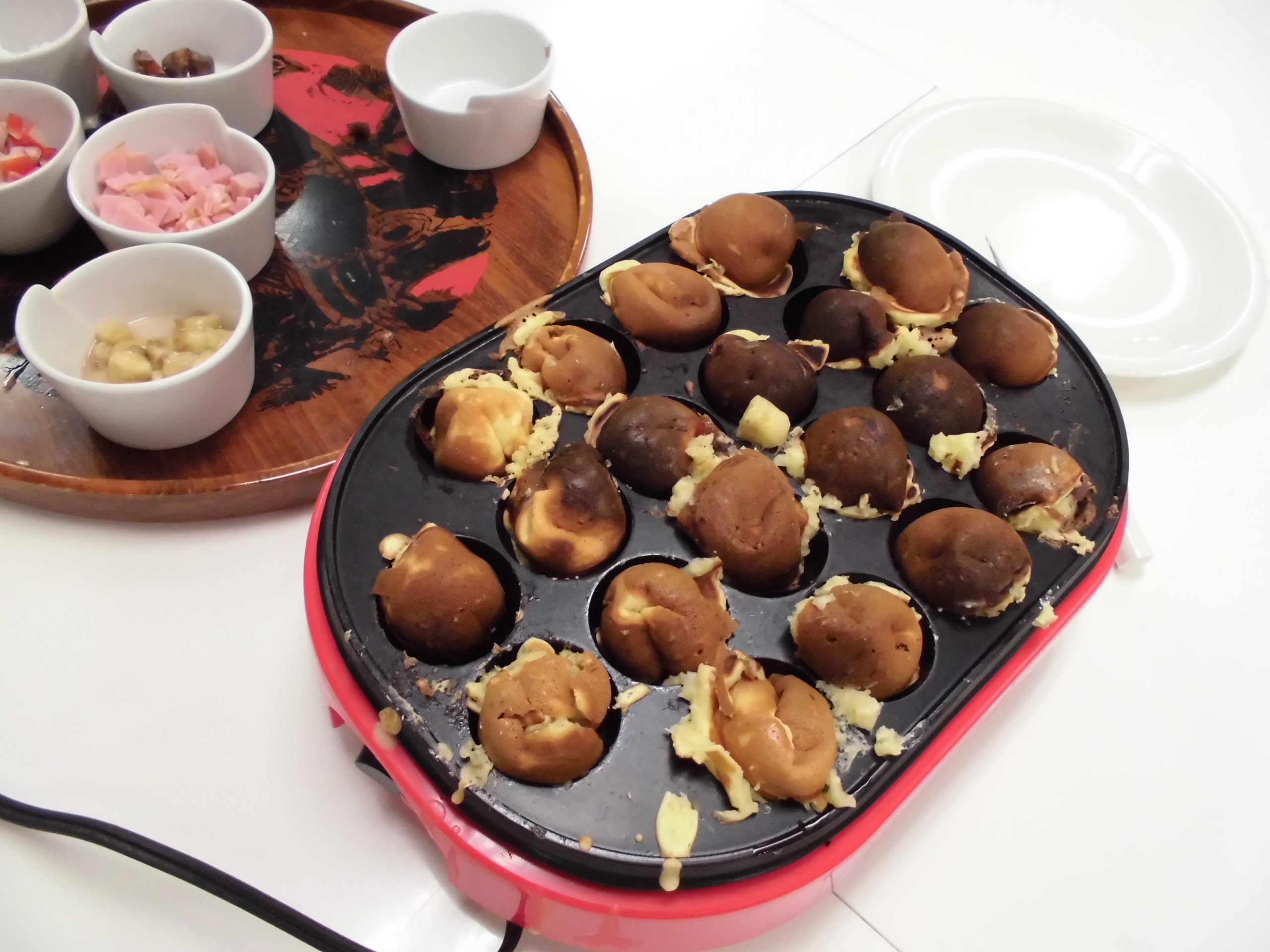 色々な具材を入れて、たこ焼き機でベビーカステラを作りました。