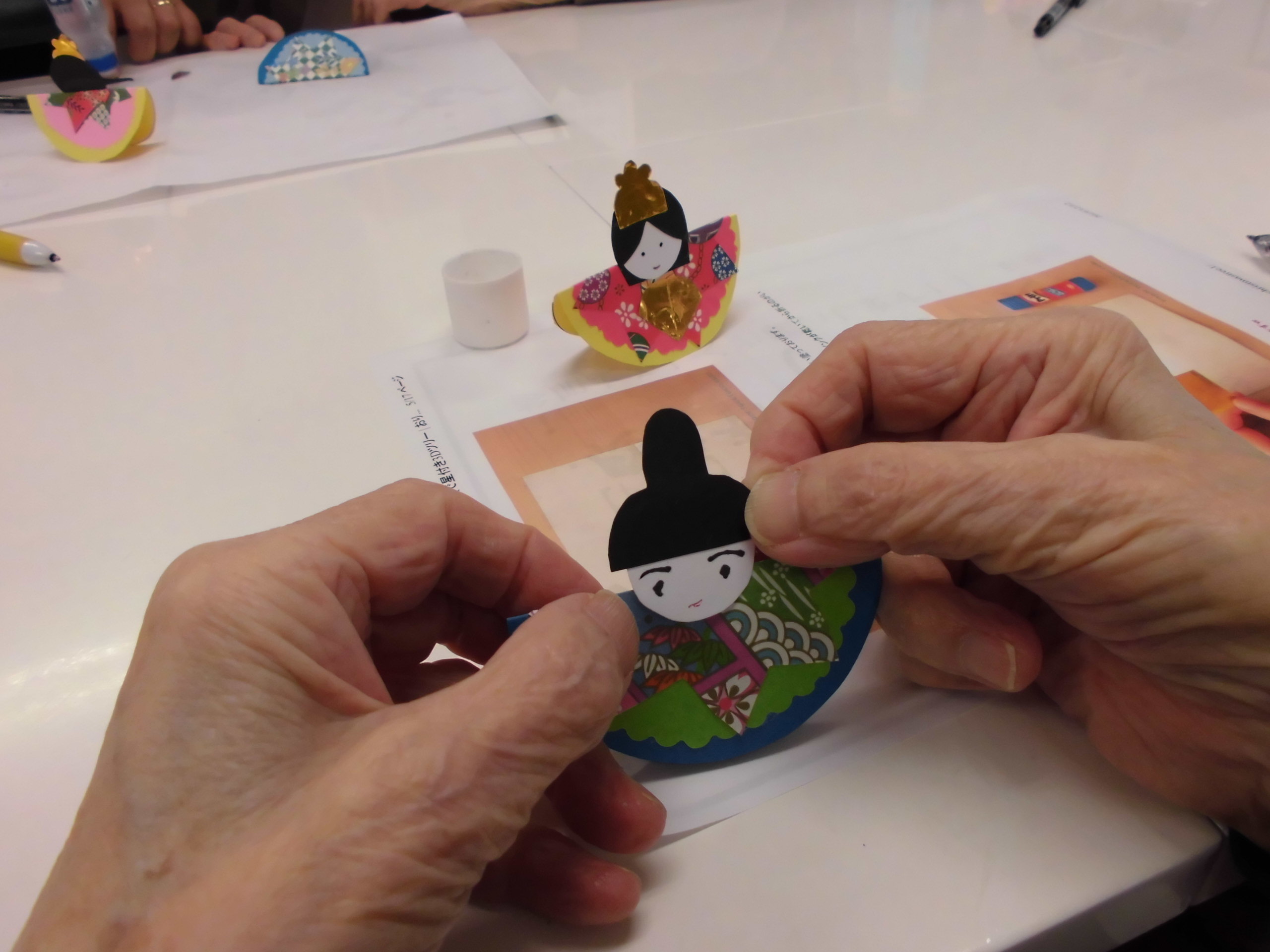 小さい部品をのりで貼り付け、かわいいお雛様を作って下さいました。