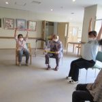 利用者様、職員みんなでワイワイと体操を行い、利用者様からも「楽しかった!」「良い運動になった」との声が聞かれました♬