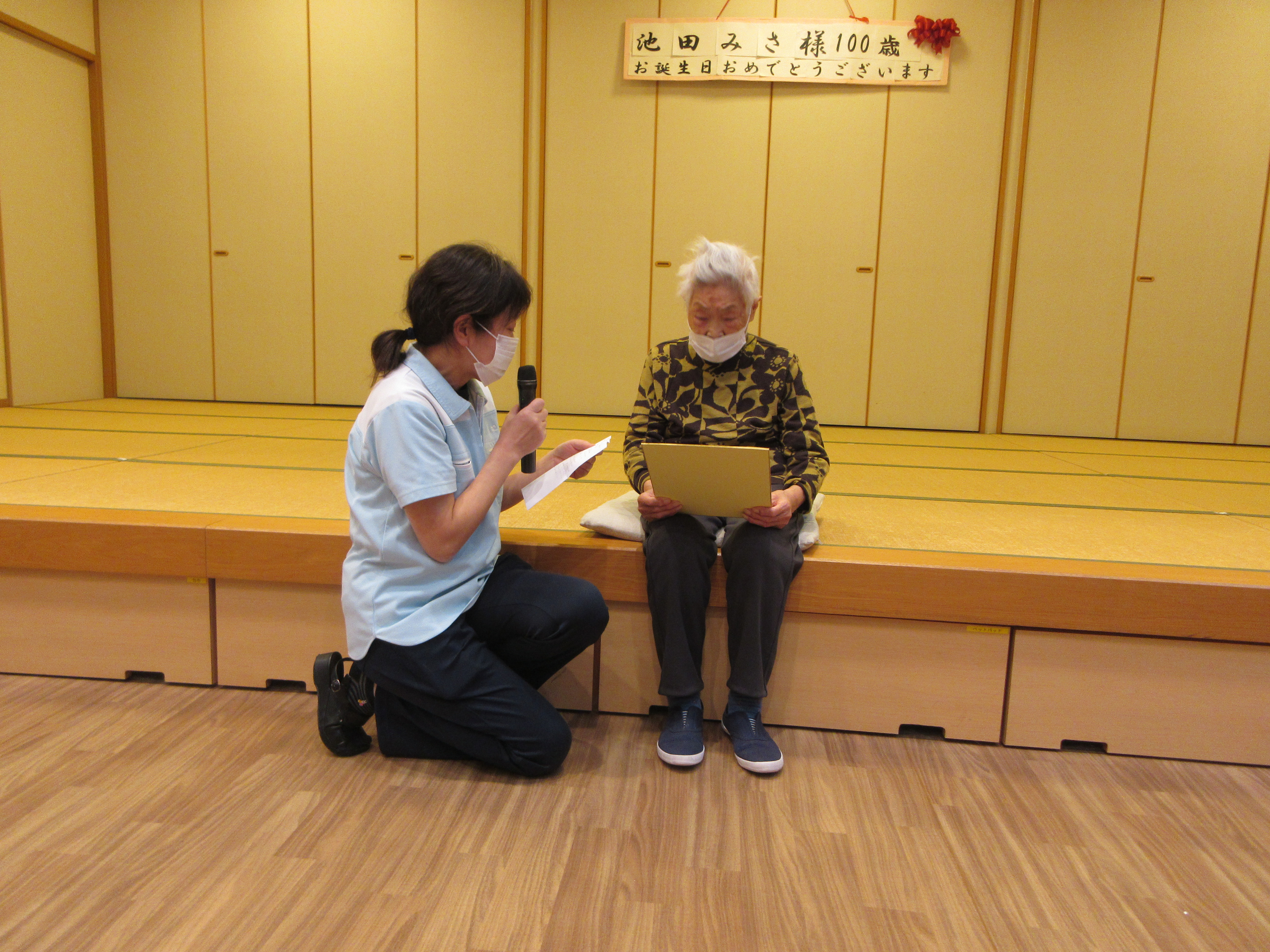 12月13日が100歳の誕生日の池田みささんのお祝いを11日に行いました。