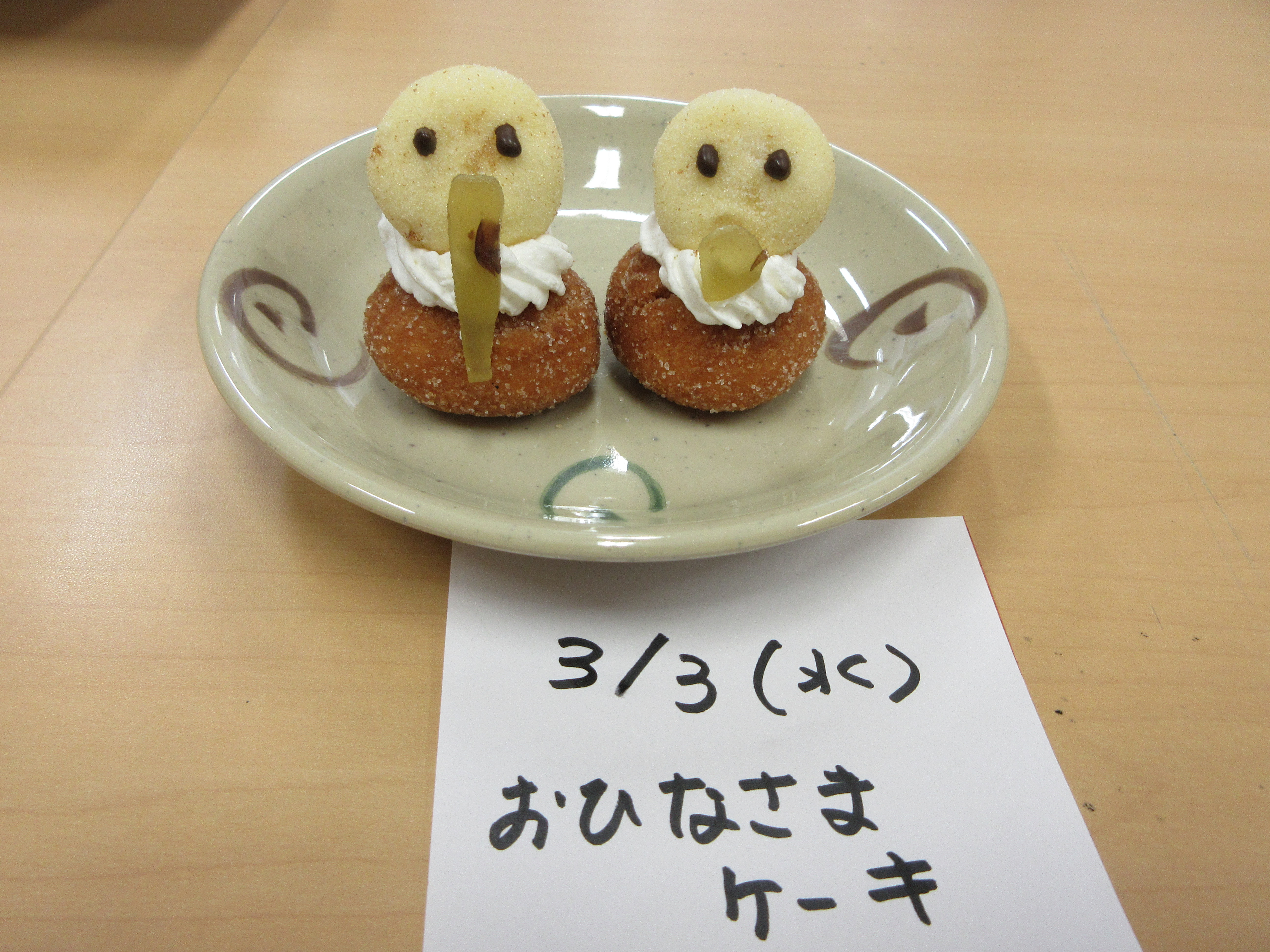 デイサービスセンターでもひな壇を飾り、おひなさまデザートを食べました。