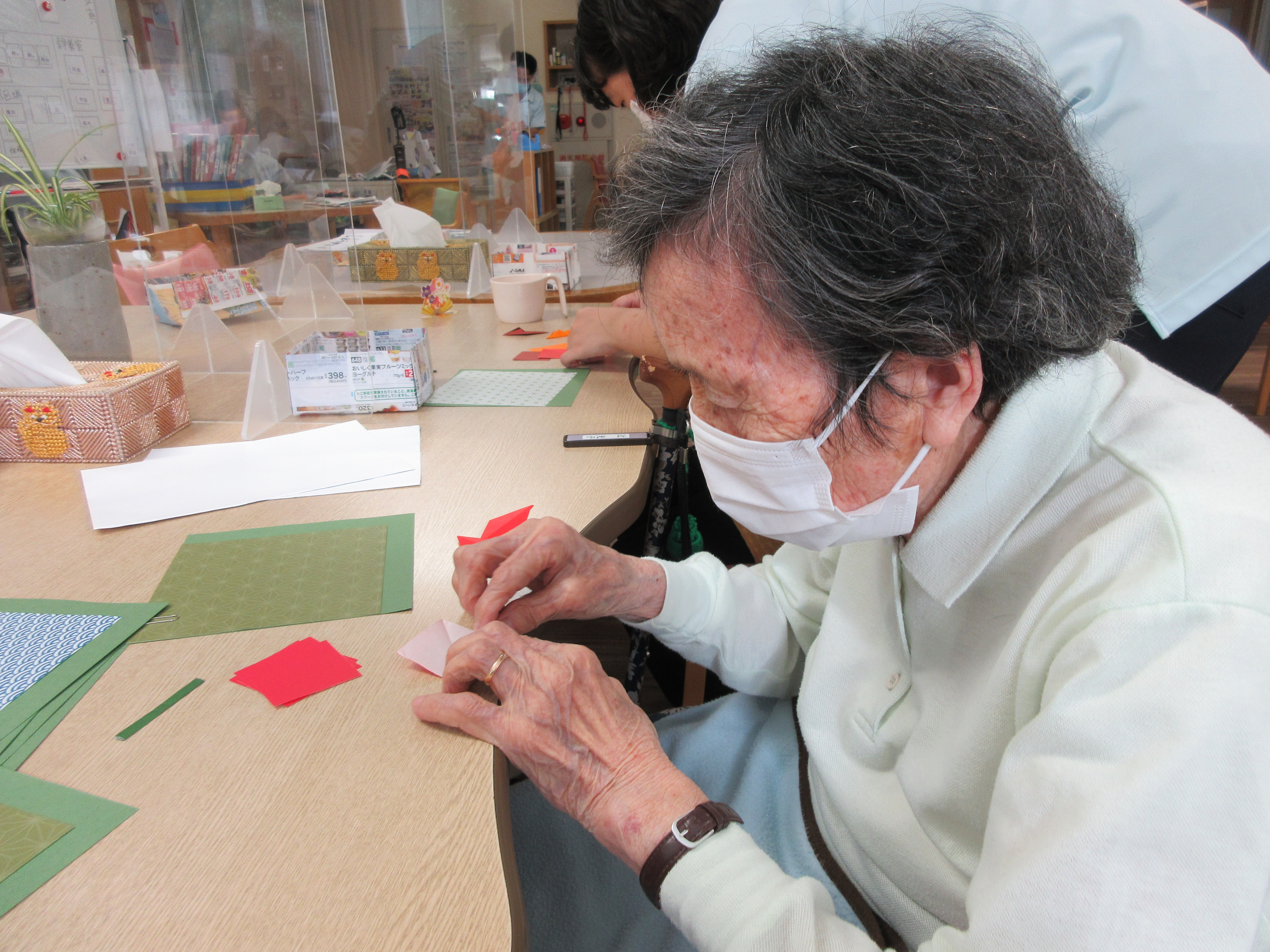 デイケアでは壁に貼る飾りを作りました♬