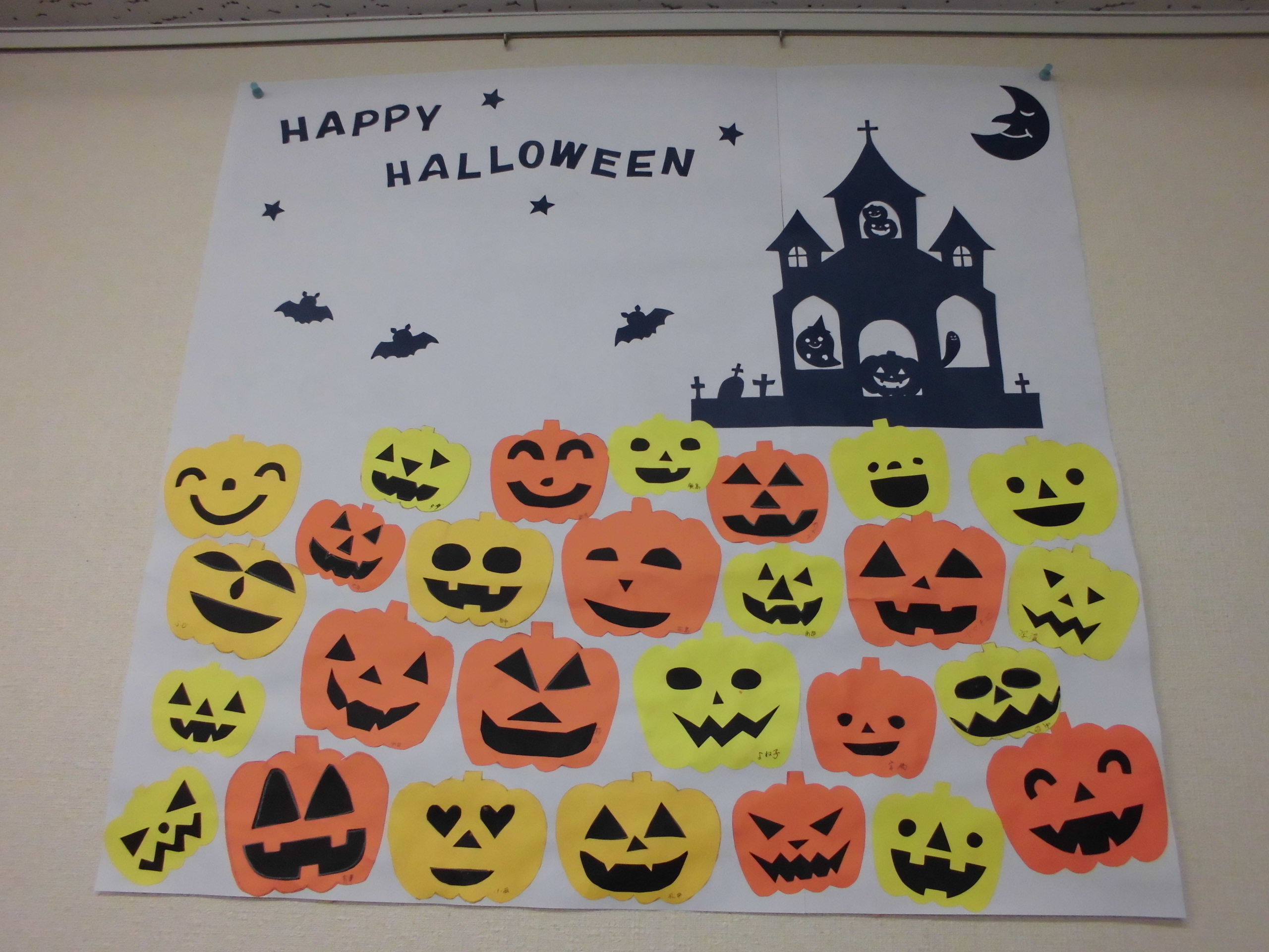 怖い顔、笑っている顔と色々の表情のカボチャが出来上がりました。