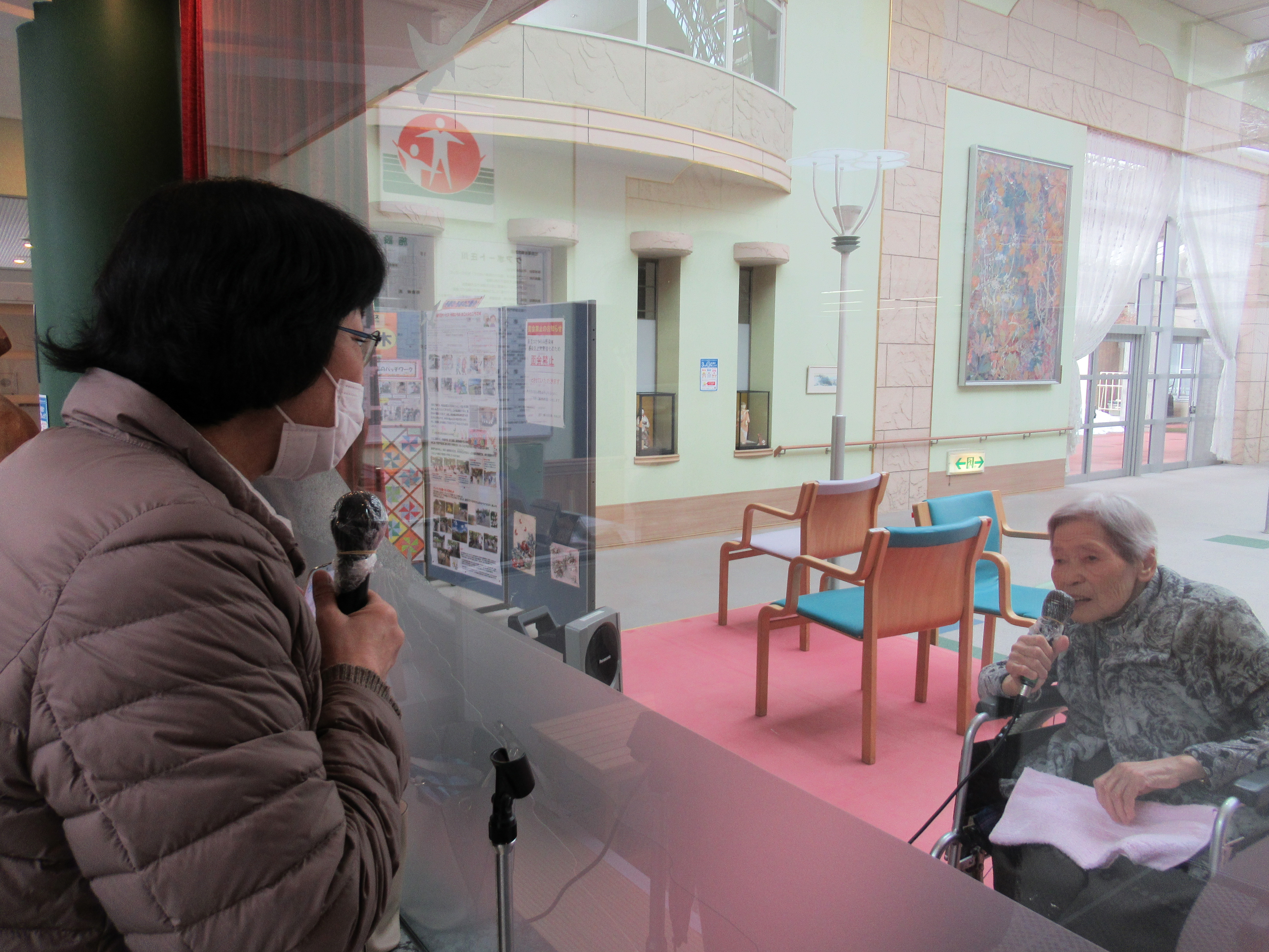 昨年12月から正面ホールにてガラス越し面会を始めました。