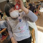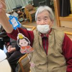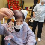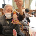 デイサービスでは工作で吊るし雛を作りました。