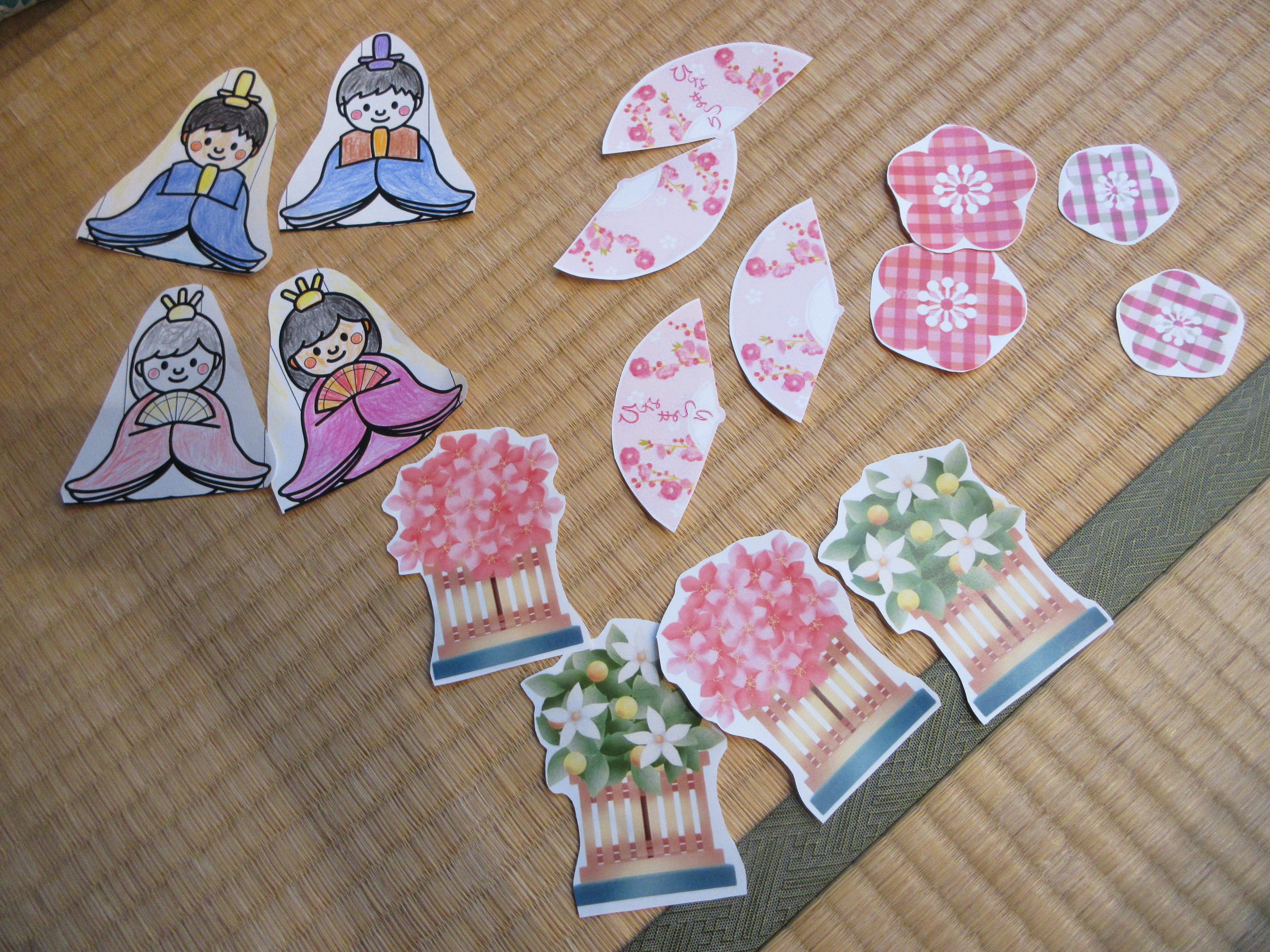 おだいりさまとおひなさまのお着物と、好きな飾りを選んでいただき、工作スタート❣