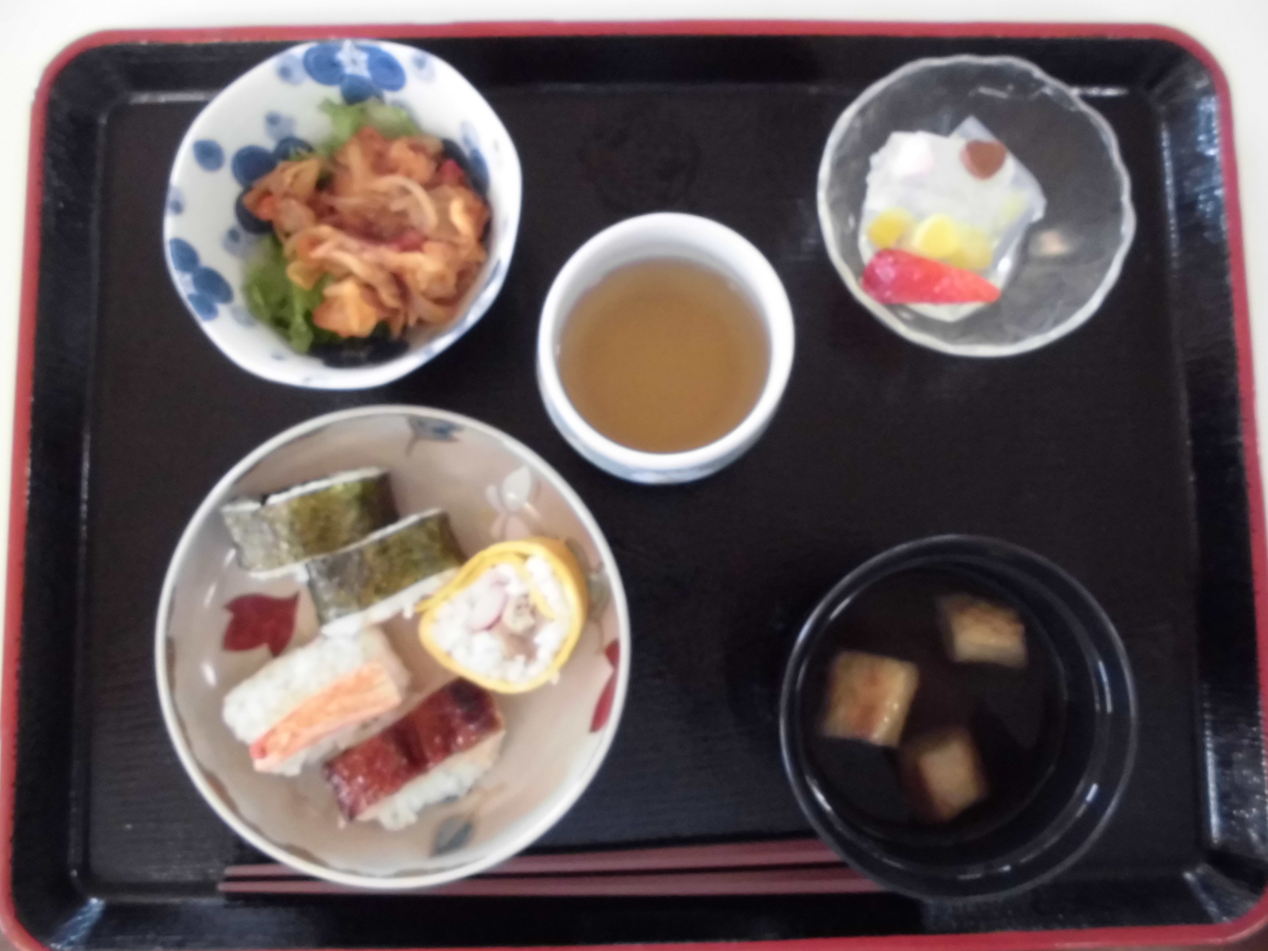 昼食に、にぎり寿司やのり巻きなど、春らしく彩の華やかなお食事を召し上がっていただきました🍴