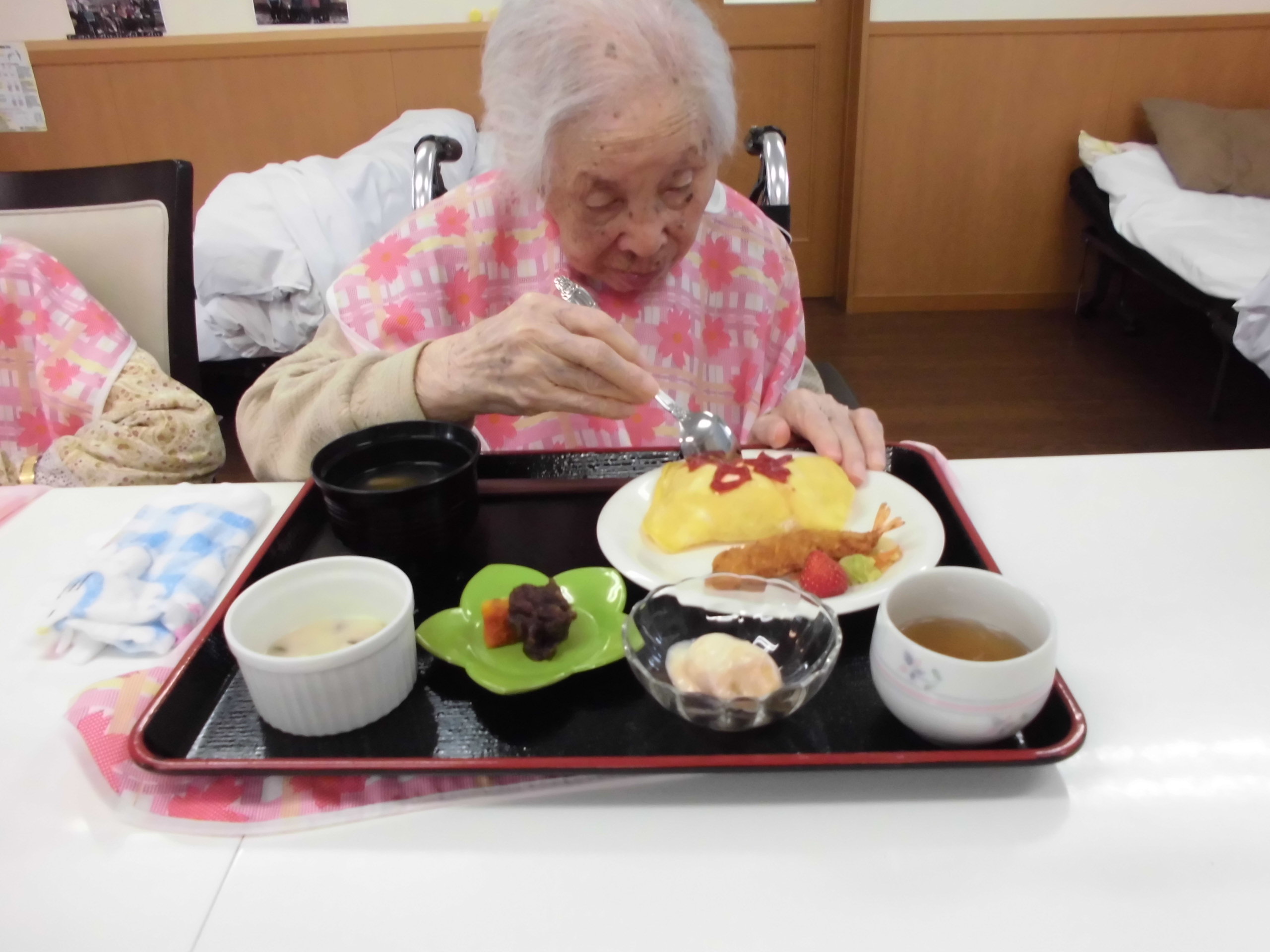 本日は、5月20日に105歳を迎えられる利用者様のリクエストでオムライスを召し上がっていただきました。