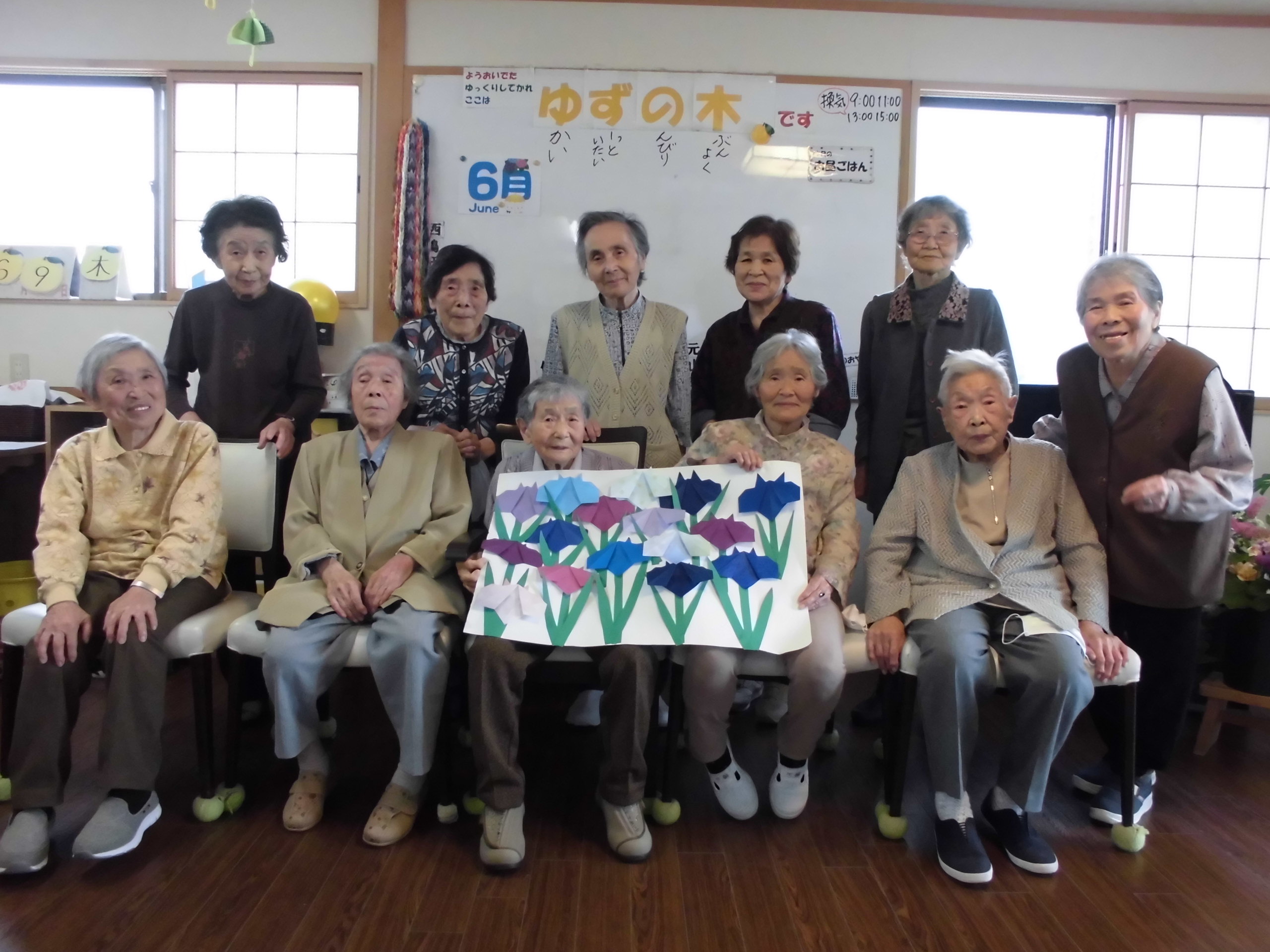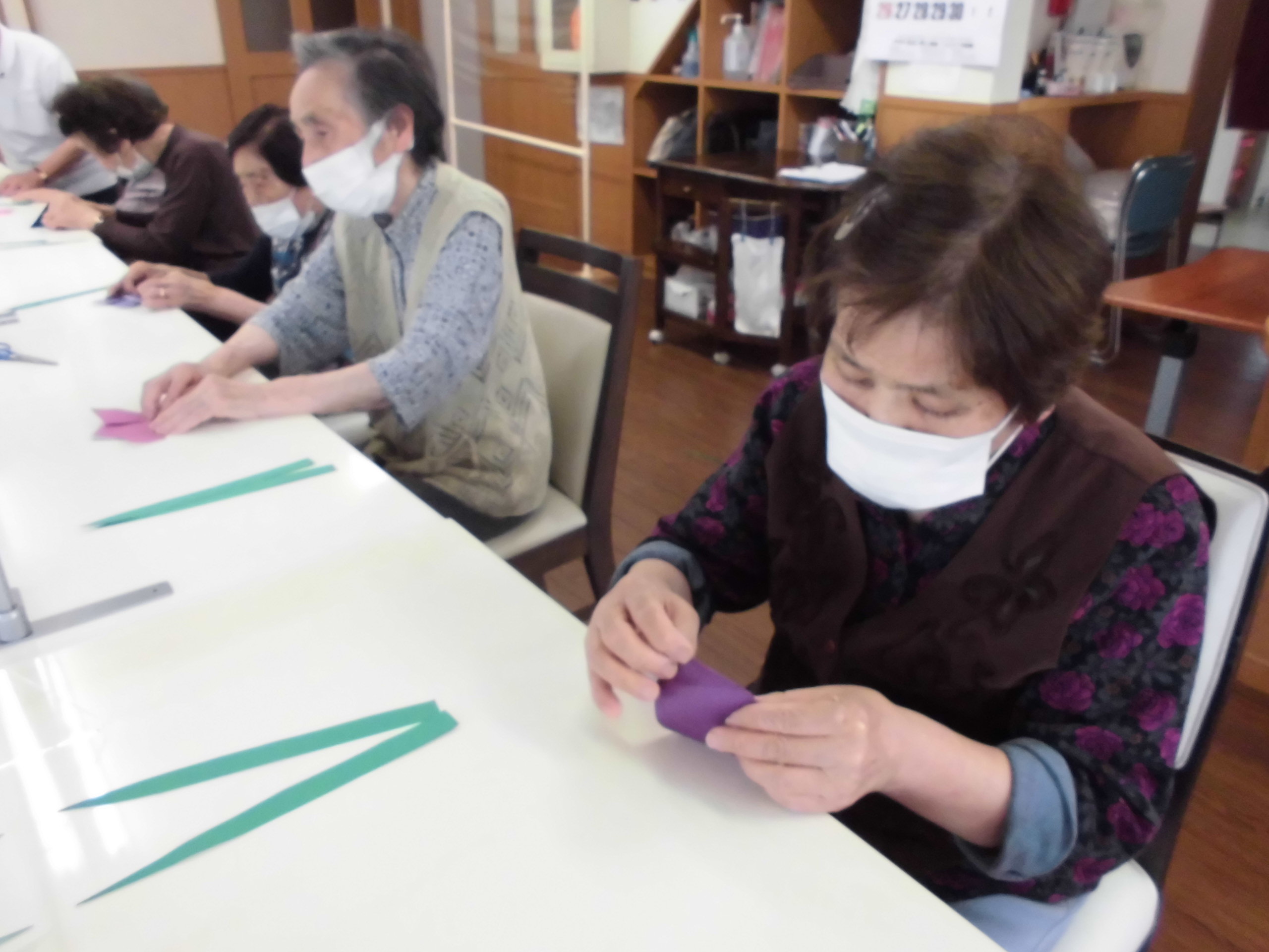 デイサービスゆずの木では、利用者様に綺麗な菖蒲の花を作っていただきました。