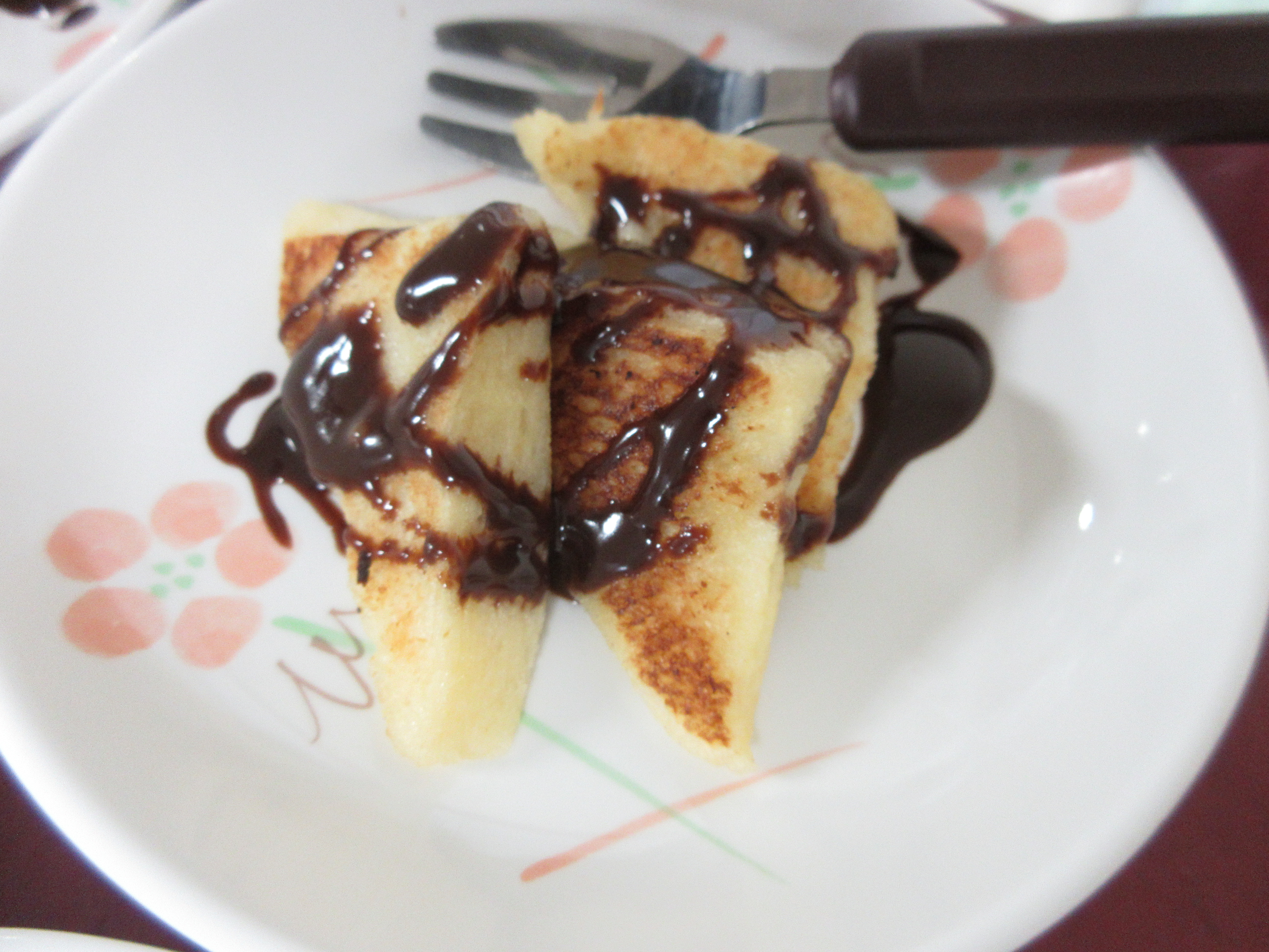 ②切った食パンを卵と牛乳を混ぜた液に浸して、焼きます