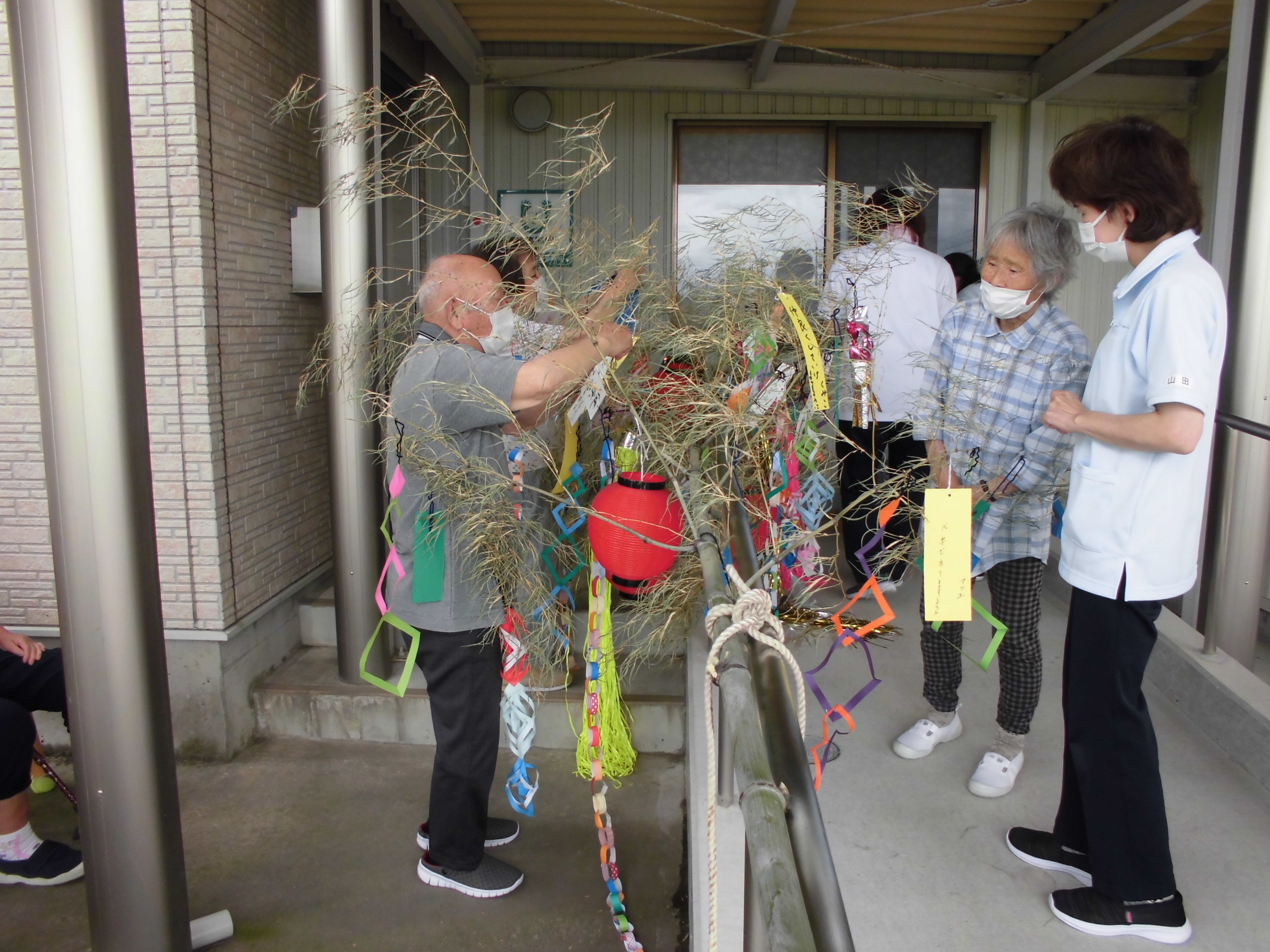 本日、利用者様に飾りつけをしていただき、立派な七夕が完成しました。