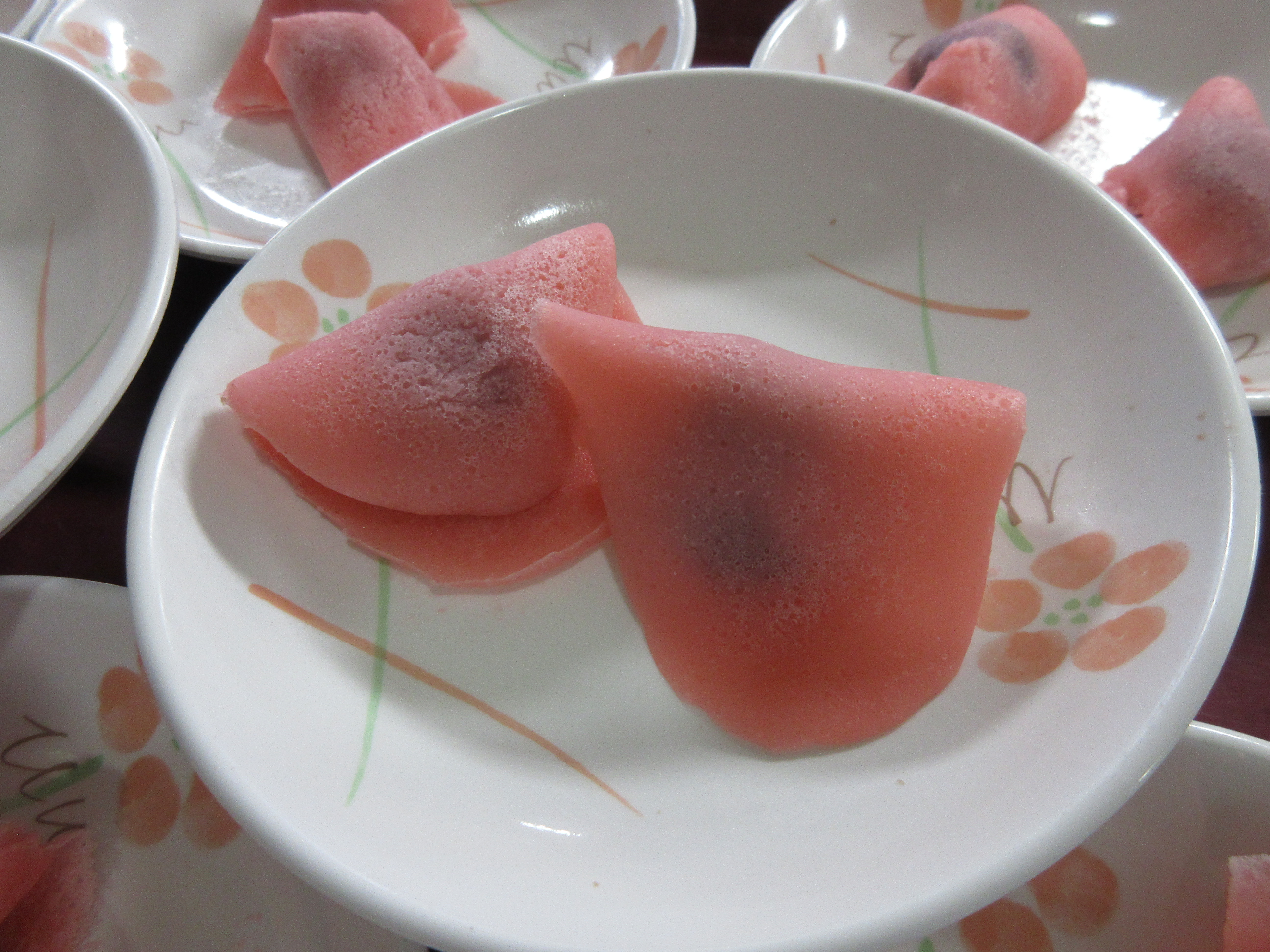 薄ピンクに色づけた生地を焼きます!